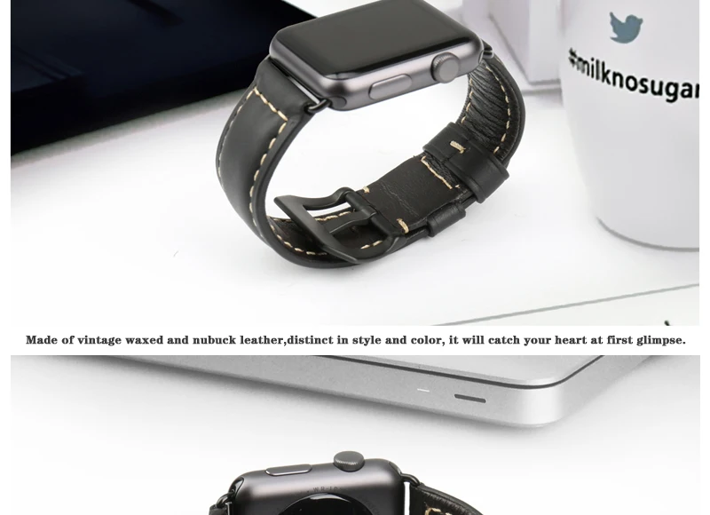 Ремешок кожаный MAIKES для Apple Watch Band, винтажный браслет для ...