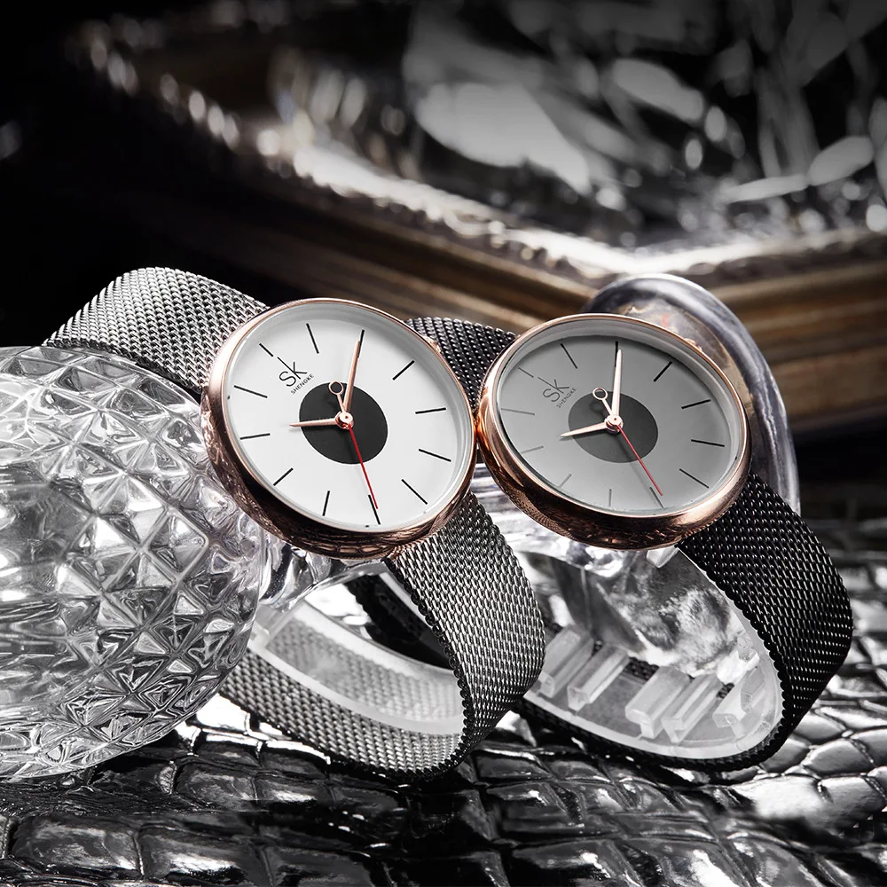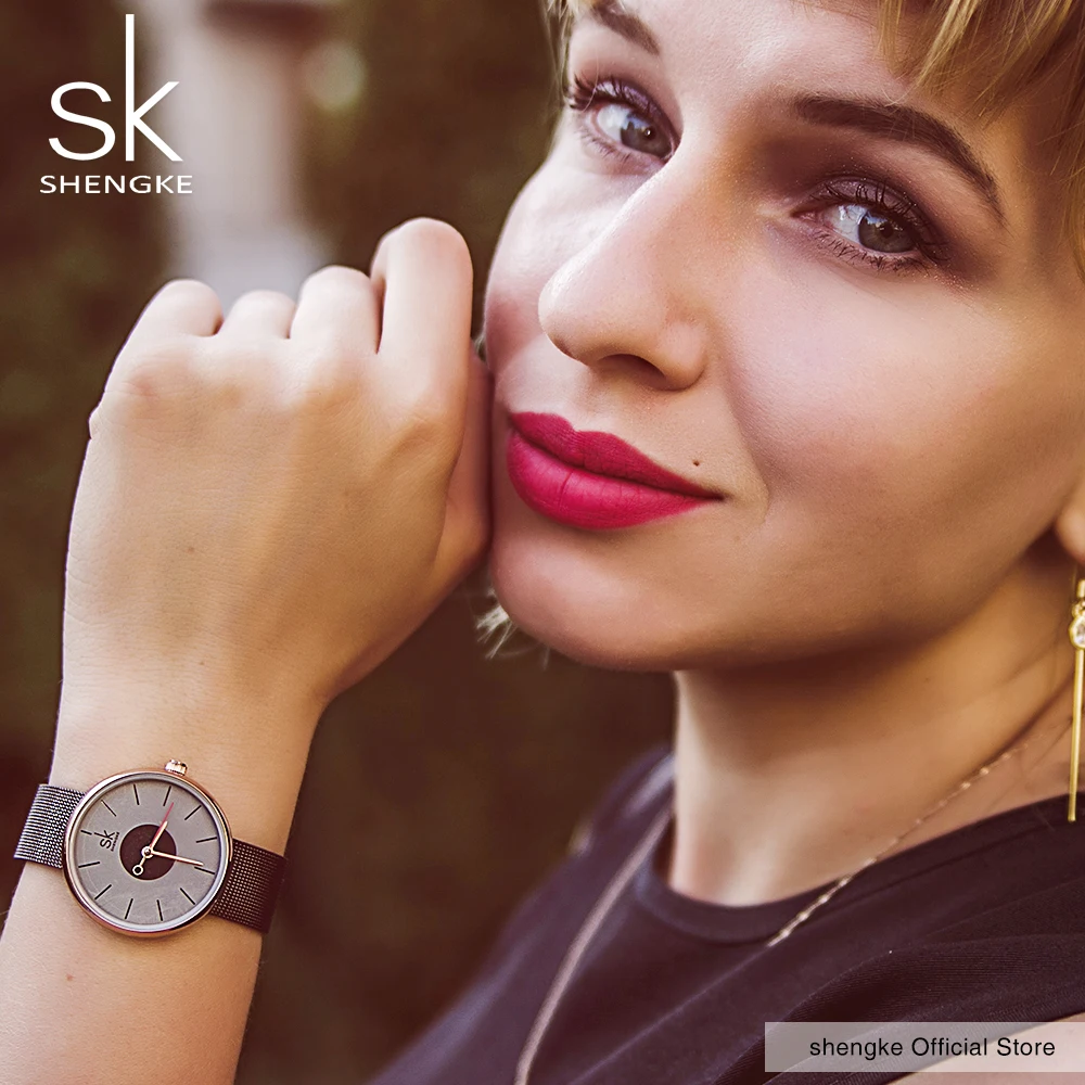 Shengke новые модные брендовые женские повседневные наручные часы с сетчатым ремешком, сочетающиеся с роскошным женским платьем, кварцевые часы, женские наручные часы 2017