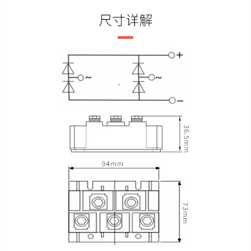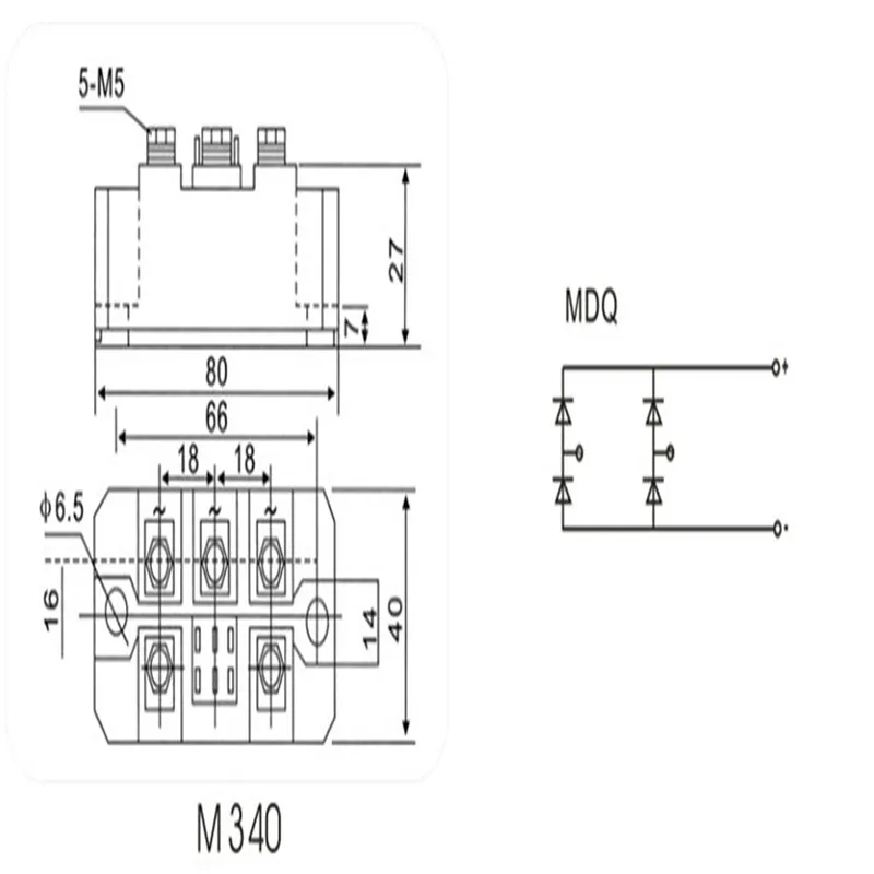 Силовой диодный модуль MDQ-100A предназначен для однофазного полуволнового выпрямления, который имеет четыре диода, соединенные в конфигурации однофазного моста.