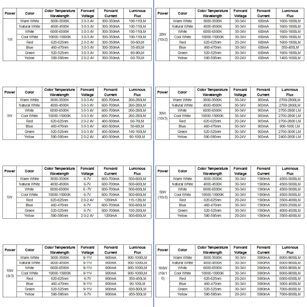 Высокая мощность LED COB лампы Чип 1 Вт 3 Вт 5 Вт 10 Вт 20 Вт 30 Вт 50 Вт 100 Вт Теплый Холодный белый красный зеленый синий квадратный световой матричный интегрированный