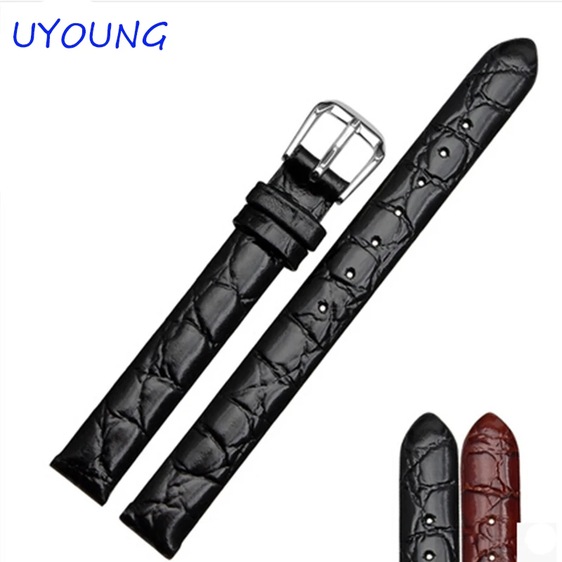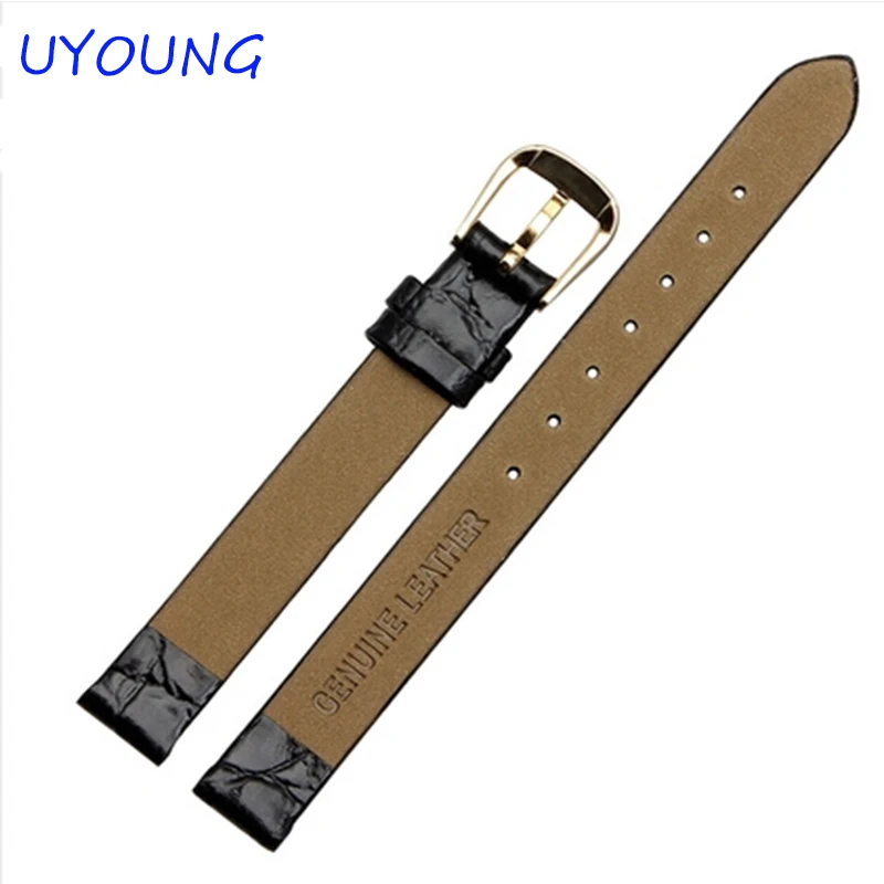 Ремешок для часов, черный, прочный, из натуральной кожи, 6 мм, 8 мм, 10 мм