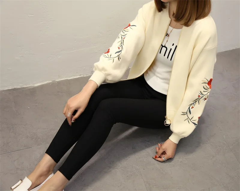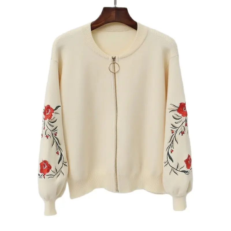 Новинка Весна 2021, женский свитер большого размера OHCLOTHING с вышивкой, кардиган на молнии с длинным рукавом, пальто F1761