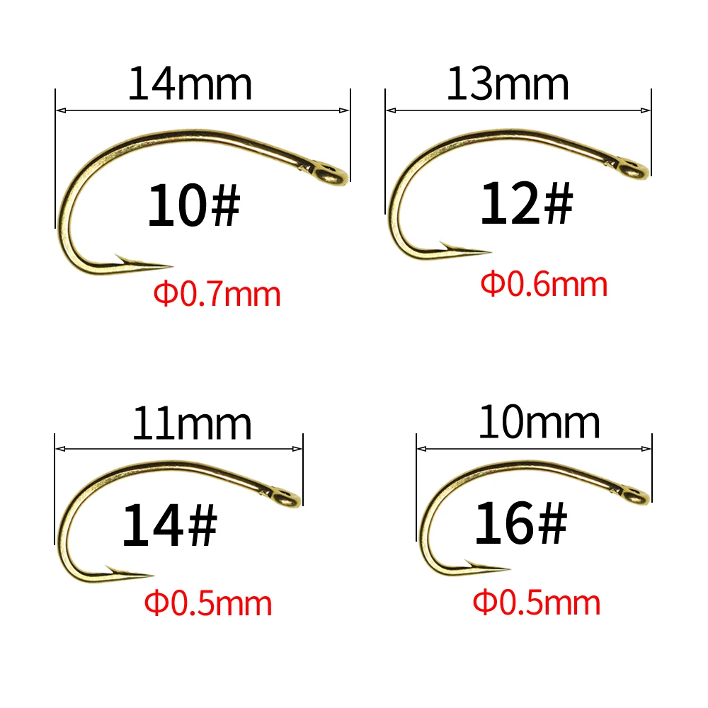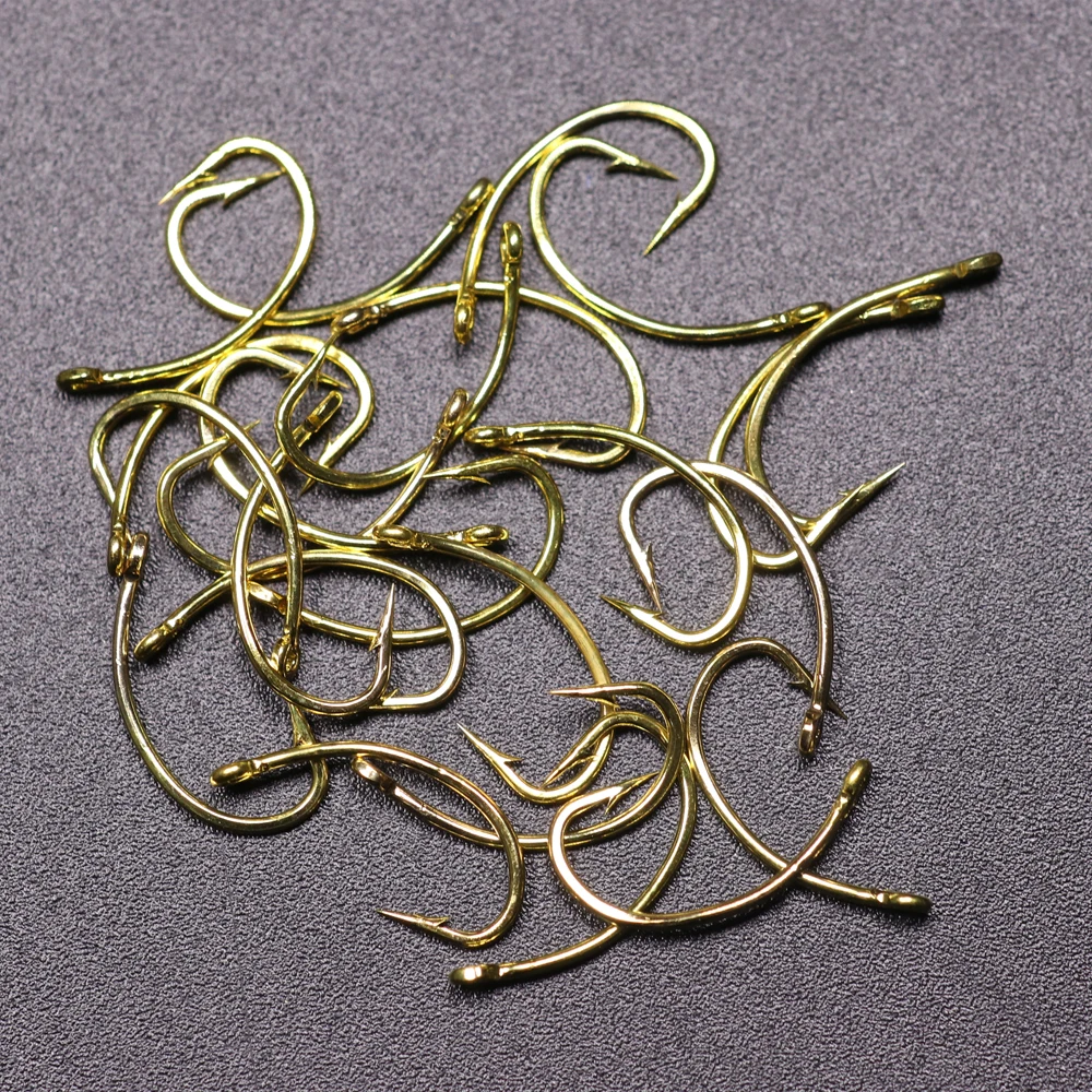 50 шт., золотой цвет, Завязывающиеся крючки для ловли рыбы, крючки для креветок, Размер 10, 12, 14, 16