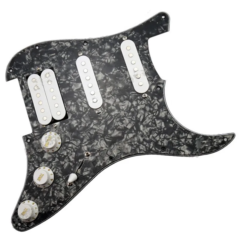 Черная жемчужная Накладка для гитары и SSH White pickupЭто имеет 2 одиночные пикапы катушки и 1 двойные пикапы катушки для классического звука.Коммутатор представляет собой 5 позиционный переключатель и проводка составляет один объем и 2 тона управления.Все, что вам нужно сделать, это припаять входной разъем и готово к игре!11 винтовых отверстийМатериал: ПВХ Pickguard и медная катушка пикапПосылка включает:1 х гитарная защита11 крепежных винтов