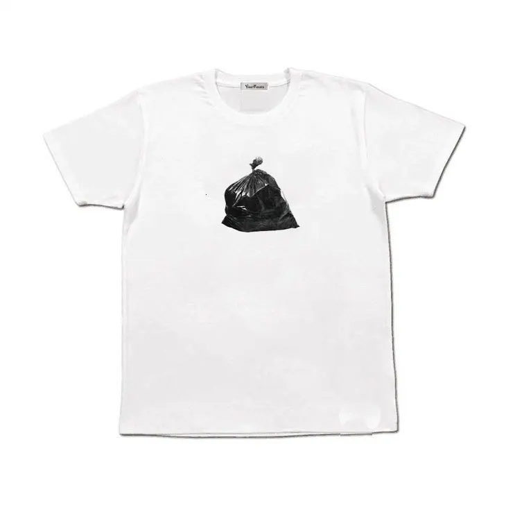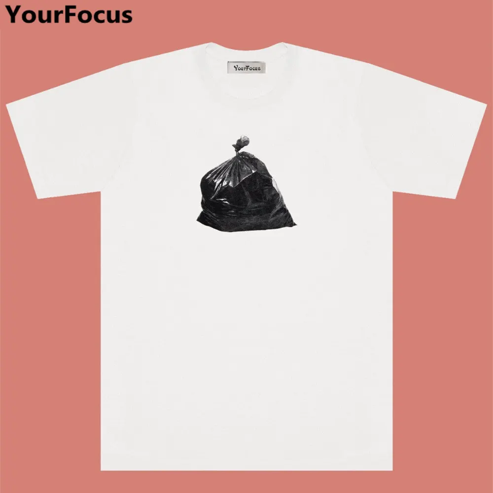 Винтажная Повседневная летняя футболка в стиле Харадзюку с принтом в виде черных пластиковых пакетов, хлопковая свободная футболка с круглым вырезом и коротким рукавом, женская