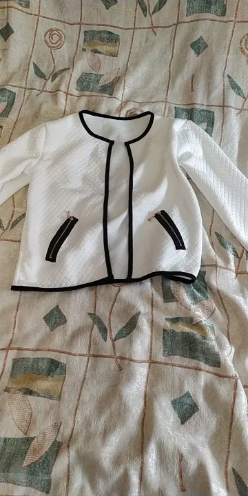 продавец быстро отправил заказ. материал приятный. думала это курточка, но оказалось что-то типо кардигана. не застегивается никак, также нет карманов. очень хороший вариант на весну или даже летний вечер. стильно смотрится. больше. информации о составе нет.