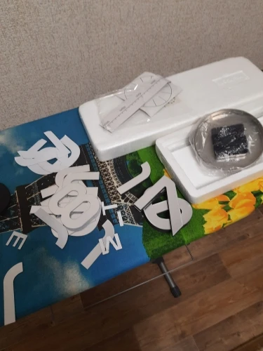 Просто то, что приведено в описании. Он прибыл слишком быстро, около 15 дней! Без каких-либо деталей, хорошая упаковка. Очень внимательный продавец и отличная сделка. Я еще не надел его на стену, но я точно знаю, что он будет выглядеть красиво!