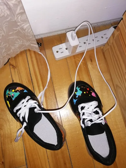 1. Этот товар поставляется без коробки и без зарядного устройства.2. Он использует мобильный телефон зарядное устройство или компьютер USB интерфейс для зарядки.3. Купите пару обуви, вы можете получить 11 режимов (7 статических цветов 4 режима изменения).Когда вы получите эту обувь, пожалуйста, зарядите ее сразу,Потому что батарея может не работать,Светодиодный светильник может не быть ярким.При зарядке светодиодный светильник будет светильник (или вспышкой).