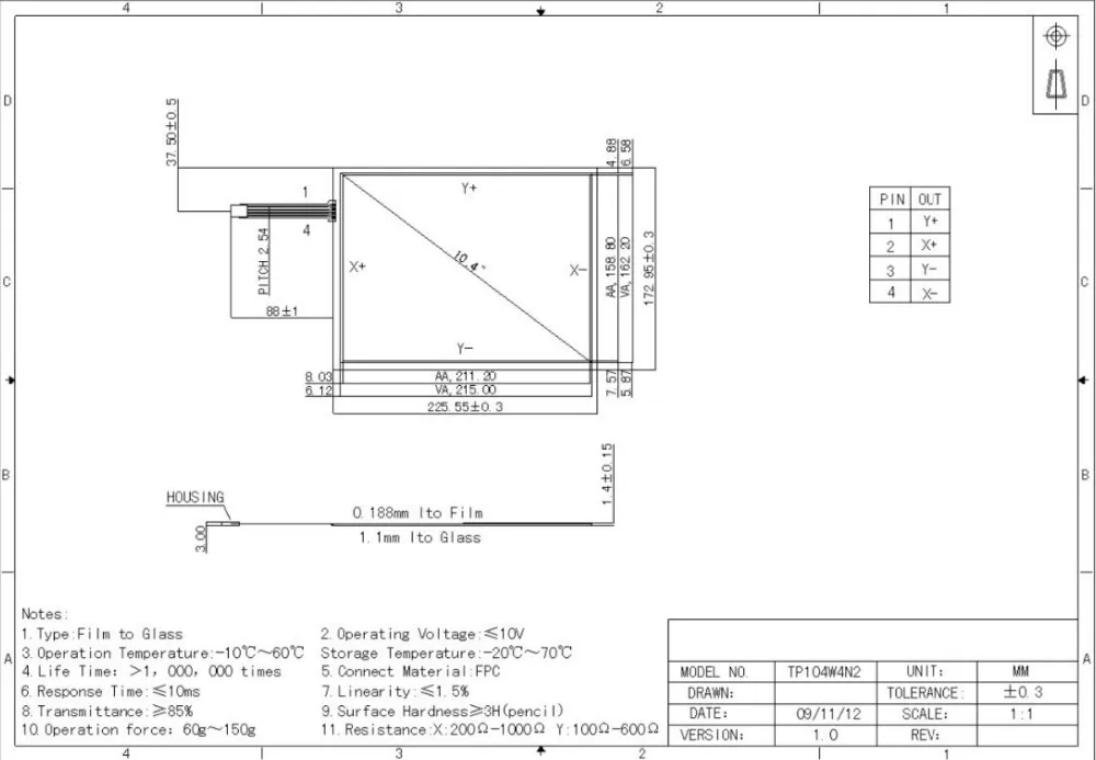 Совместимый с Win10 сенсорный экран для ноутбука 10,4 дюйма, 4 провода, резистивный сенсорный экран USB