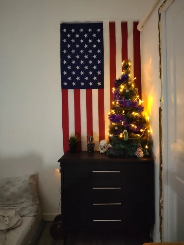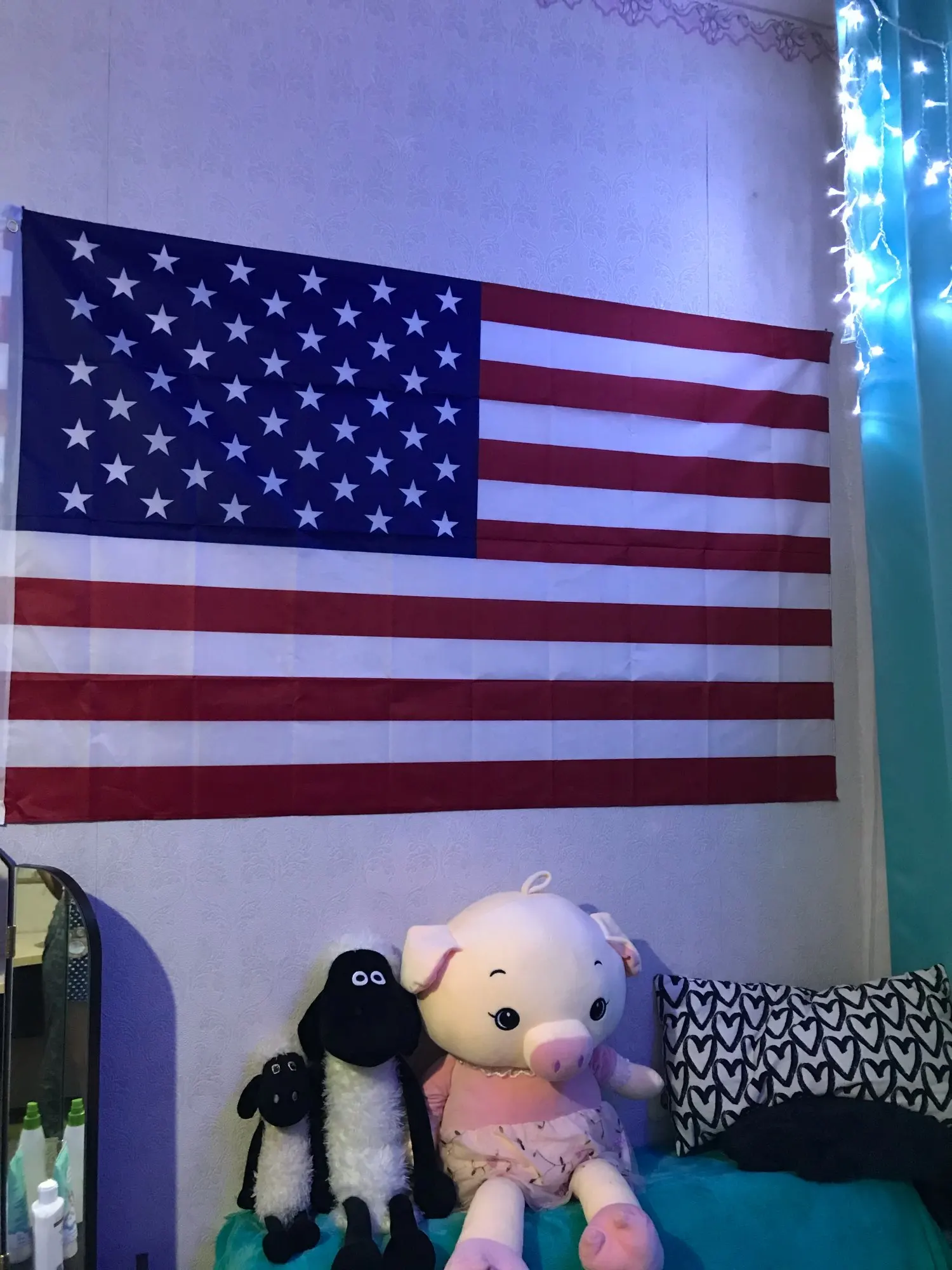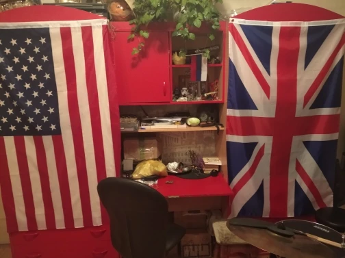 Всё как на картинке, флаг красиво вписался в интерьер.