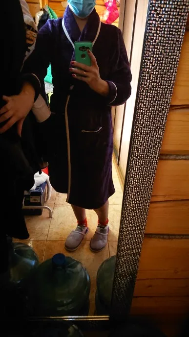 Сначала не хотела ничего писать. Обычный халат. На очень небольшой рост. Один из многих. Просто халат. Однако такой уютный. Синтетика, но приятная и тёплая. Но короткая. Если вы выше 1,7 м , то нужно быть готовым к тому, что коленки будут мёрзнуть. Однако все остальное - кайфует.