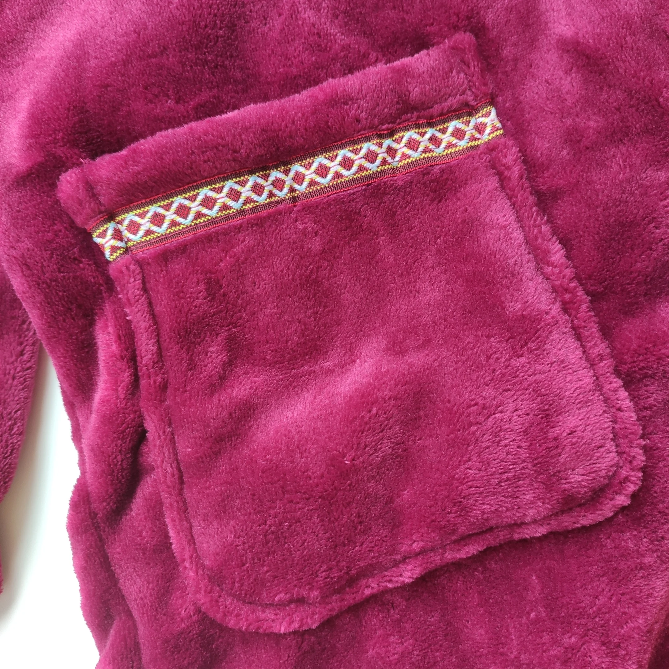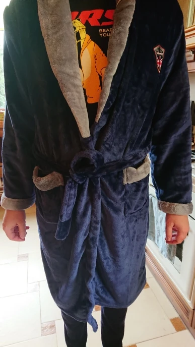 Халат потрясающий! Мягкий, теплый, плюшевый. Я в восторге. Ткань плотная, ворс густой. Синтетика очень приятная. Швы ровные, видно что оригинальное фабричное изделие, добротно и качественно сделанное. По размеру не скажу точно, у меня 58, я заказала мужской 3xl в расчете что мужские всегда больше, и на заднем бампере он сошёлся так себе. Но мне не критично, у меня спина мёрзнет, а не живот) Теперь не будет мёрзнуть)) Рекомендую к покупке! Отправка была супер-быстрой и пришел раньше всего остального, всего за 8 дней!