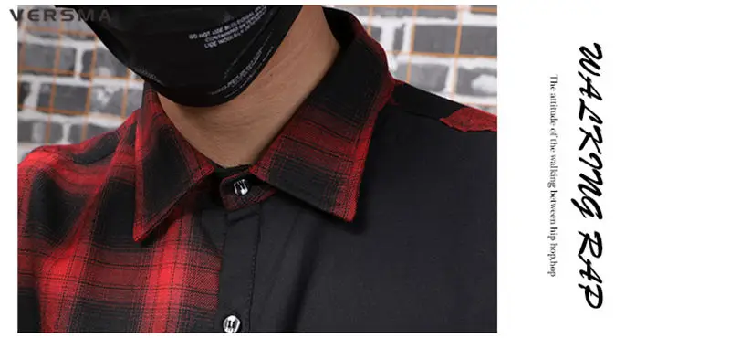 Рубашка Мужская винтажная в клетку, составного кроя, с коротким рукавом