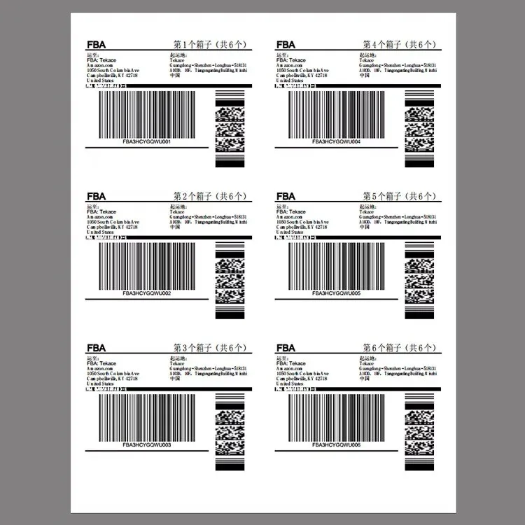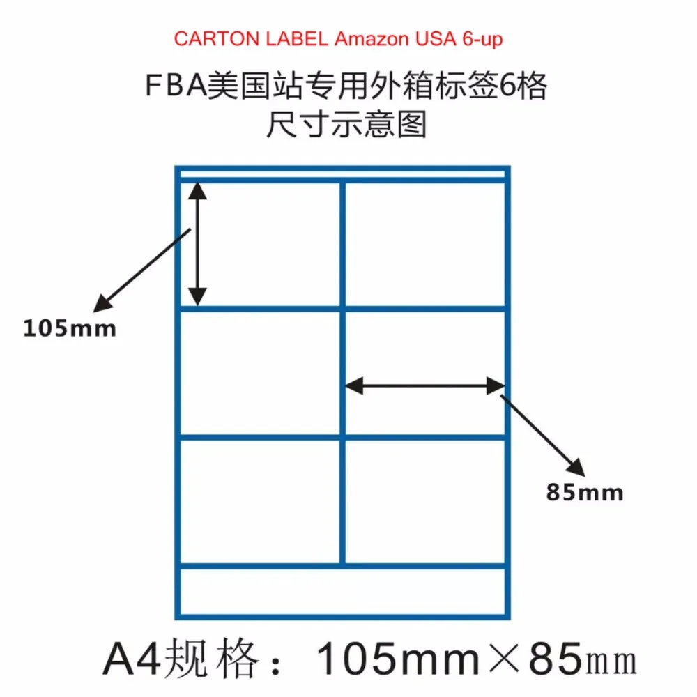 Amazon этикетка FBA 6-up 105,0 мм x 85,0 мм на A4 доставка картонная этикетка рынок США 50 листов 300 шт