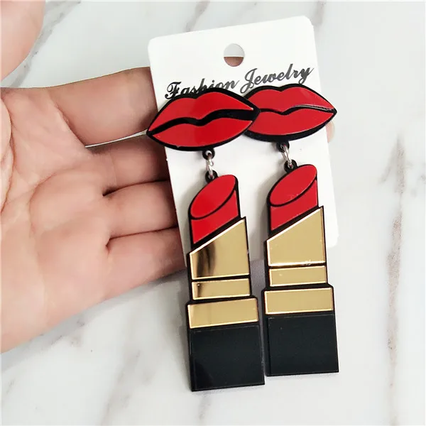 Серьги FishSheep с красными губами и помадой женские, акриловые Висячие длинные геометрические серьги в стиле хип-хоп для ночного клуба, ювелирные изделия