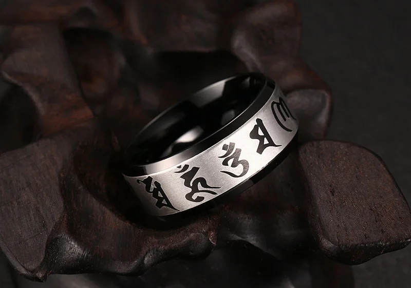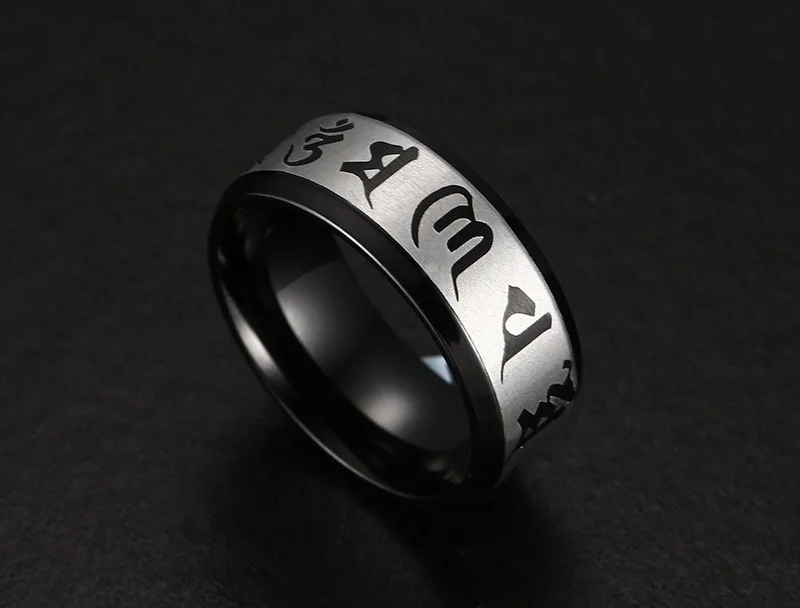 Zorcins 2022 высококачественные обручальные кольца для мужчин ювелирные изделия кольцо из нержавеющей стали традиционное мужское кольцо Ом Мани Падме Хум черного цвета