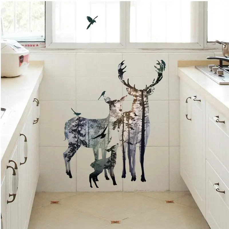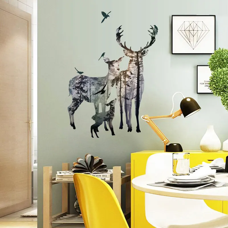 Креативные настенные наклейки на стену с изображением леса оленя, к...