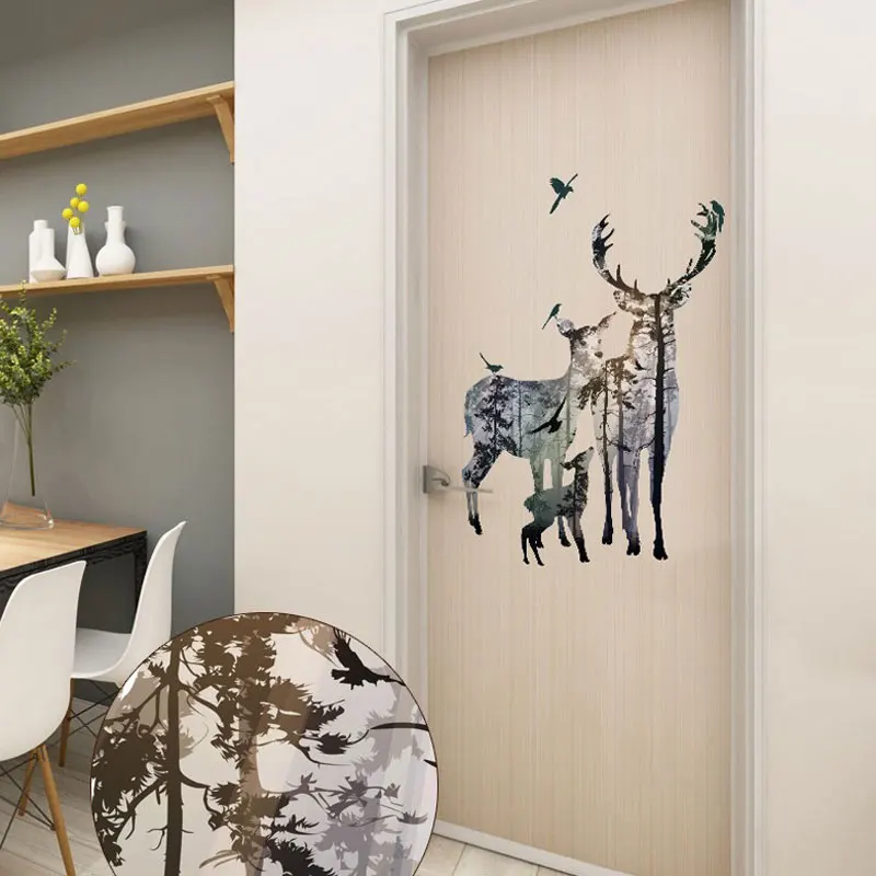 Настенные художественные наклейки «сделай сам» с силуэтом лося, украшение для дома, креативная роспись коридора, новый прозрачный ПВХ-плакат большого размера с оленем