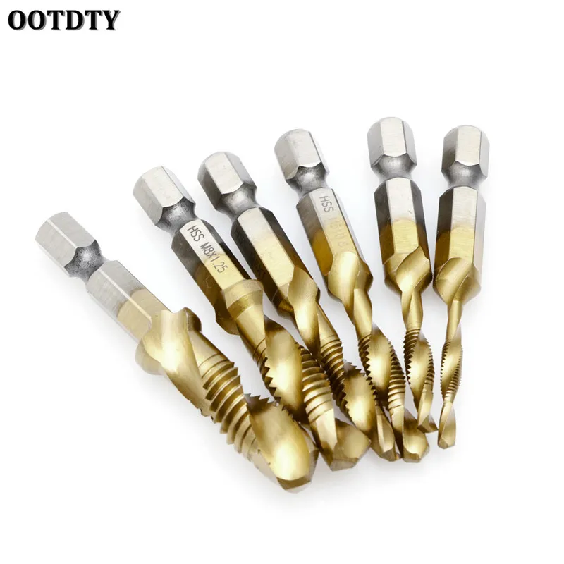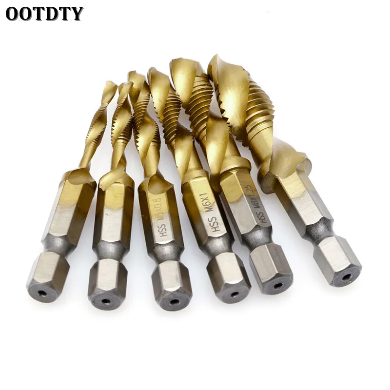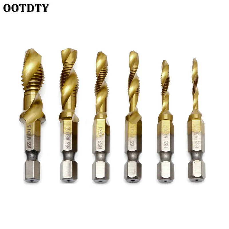 1 комплект, шестигранный хвостовик M3-M10, титановое покрытие, ручная резьба из быстрорежущей стали, метрическое сверло под Метчик бит