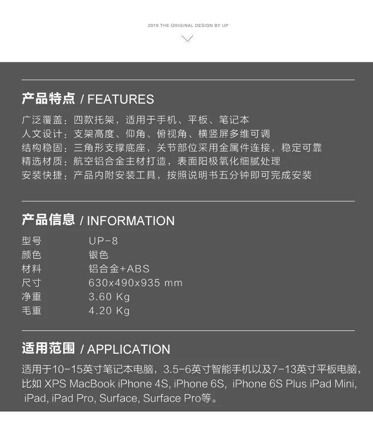UP-8 3 в 1 мобильный телефон/планшет/напольная подставка для ноутбука