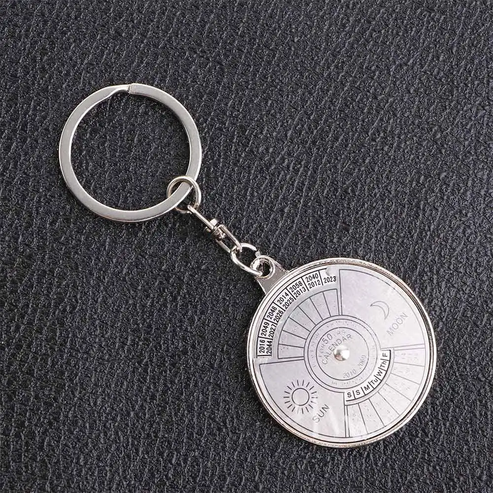 Брелок унисекс с вечным календарем на 50 лет, уникальный металлический брелок для автомобильных ключей