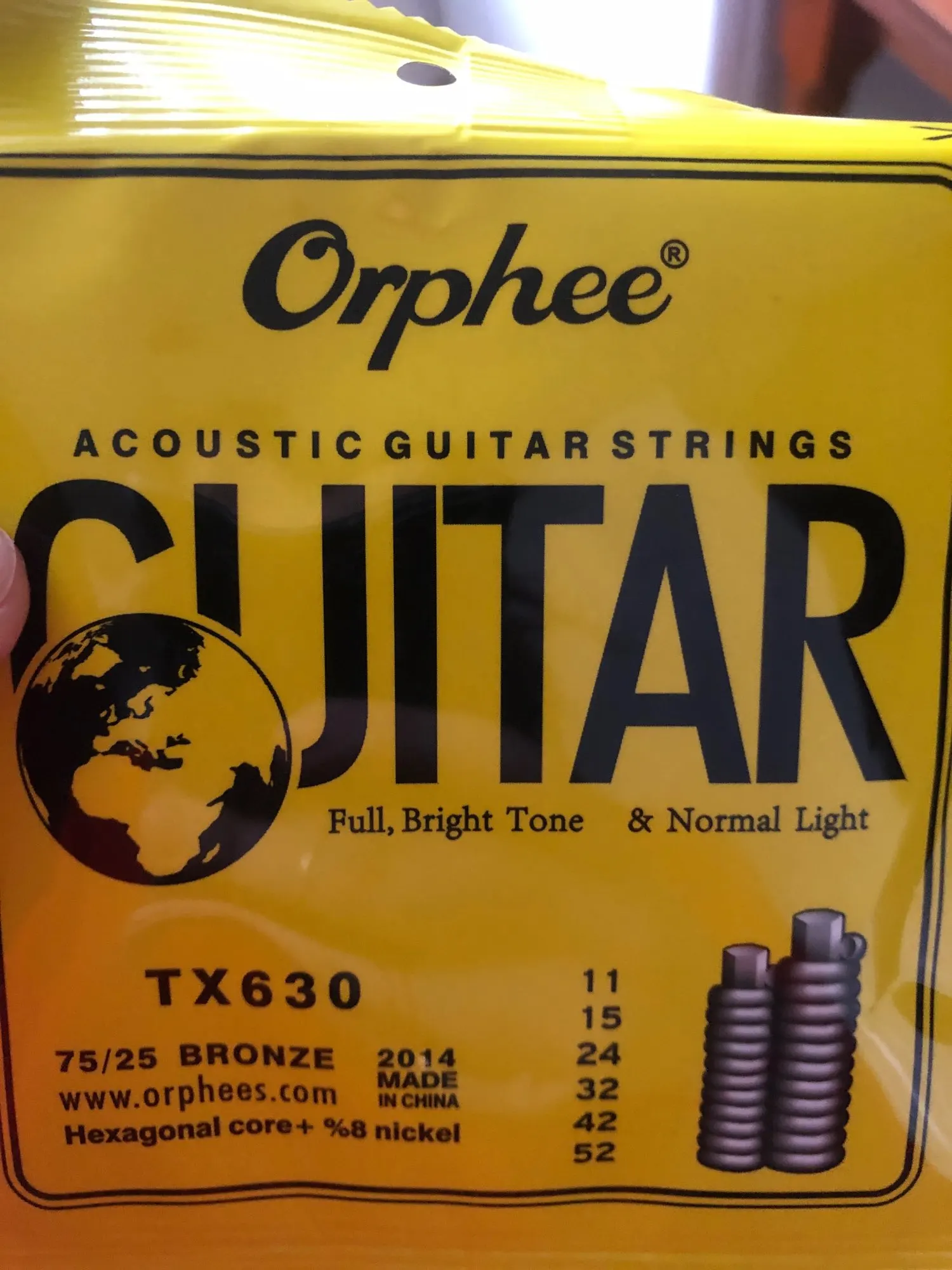 Струны для акустической гитары Orphee TX630 011-052, шестигранный сердечник + 8% никель-бронзовый яркий тон, ссветильник аксессуары для гитары