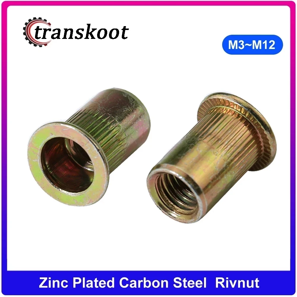 M3 M4 M5 M6 M8 M10 M12 оцинкованная углеродистая сталь, рифленые гайки, плоская головка, заклепки с резьбой вставка, заклепочная гайка