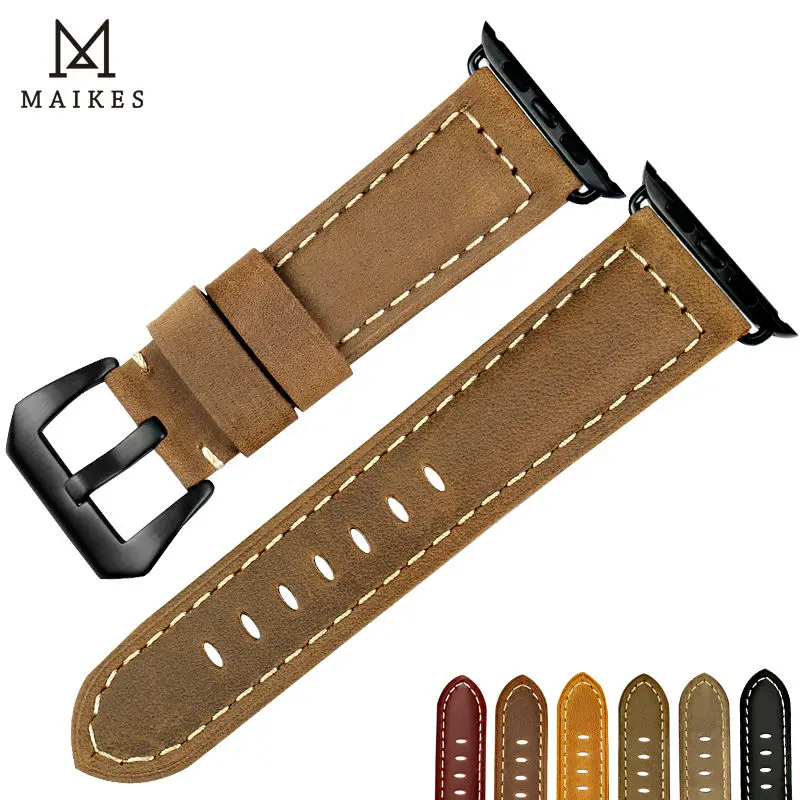 Ремешок кожаный MAIKES для Apple Watch Band, винтажный браслет для ...