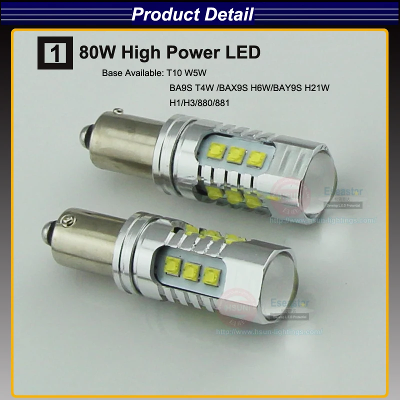 Eseastar, 2 шт., Автомобильные светодиодные лампы, светодиодсветодиодный canbus, XBD 80 Вт, H6W, T4W, H21W, светильник ни, резервное копирование