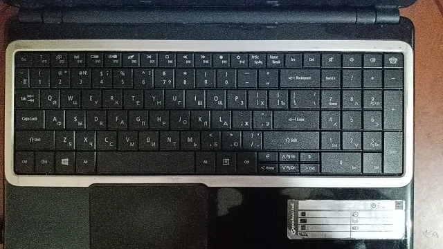 Состояние клавиатуры новое. По крайней мере шлейф клавиатуры не был загнут. возможно, стояла на другой модели ноутбука, но никаких потёртостей на клавишах нет.