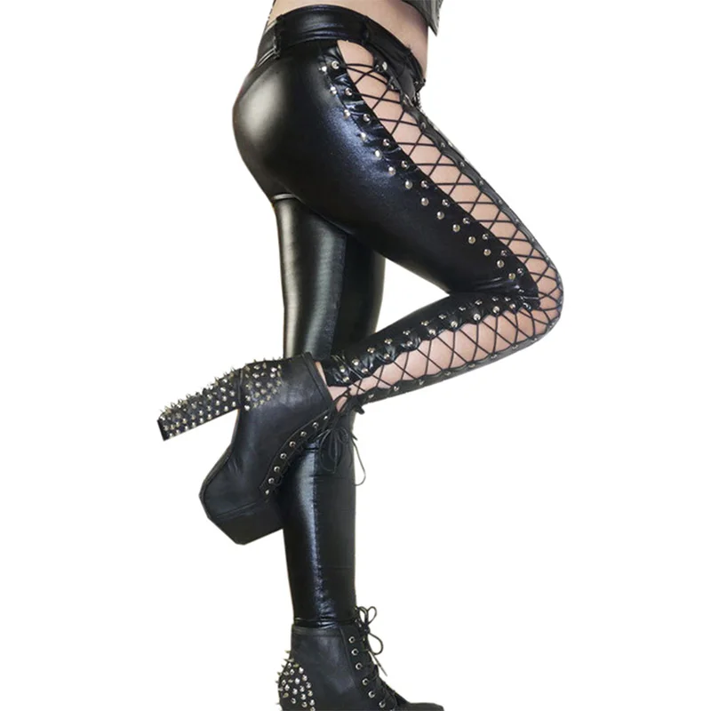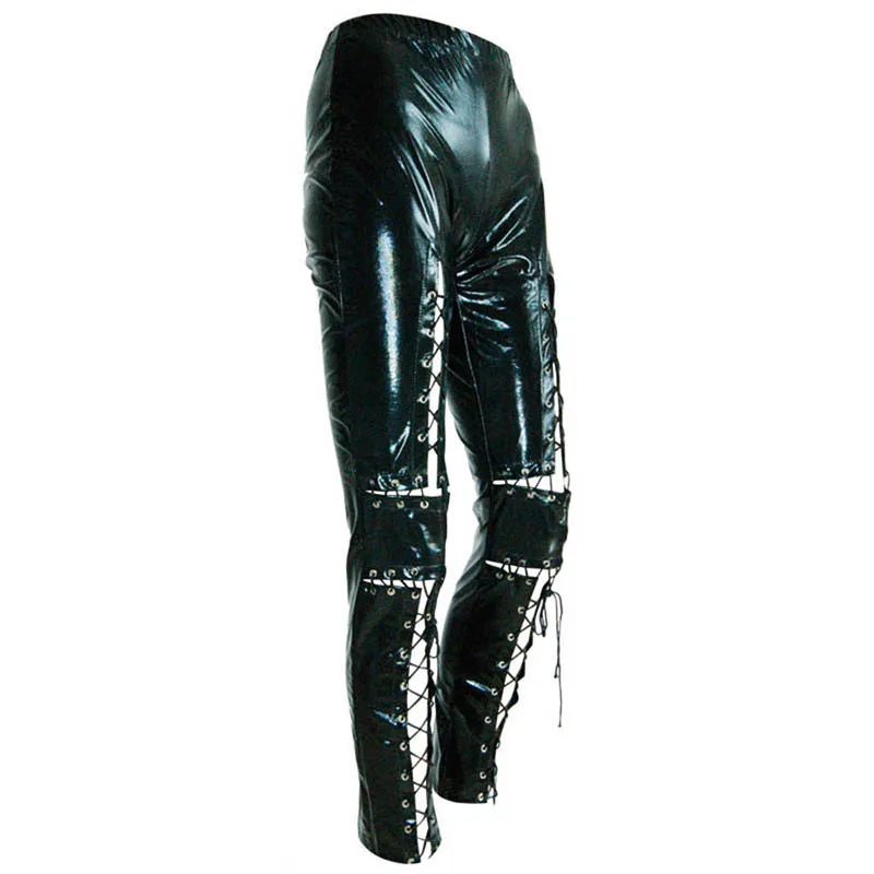 Леггинсы женские из искусственной кожи, прозрачные, черные, с цепочками, на шнуровке, в стиле стимпанк, 2020