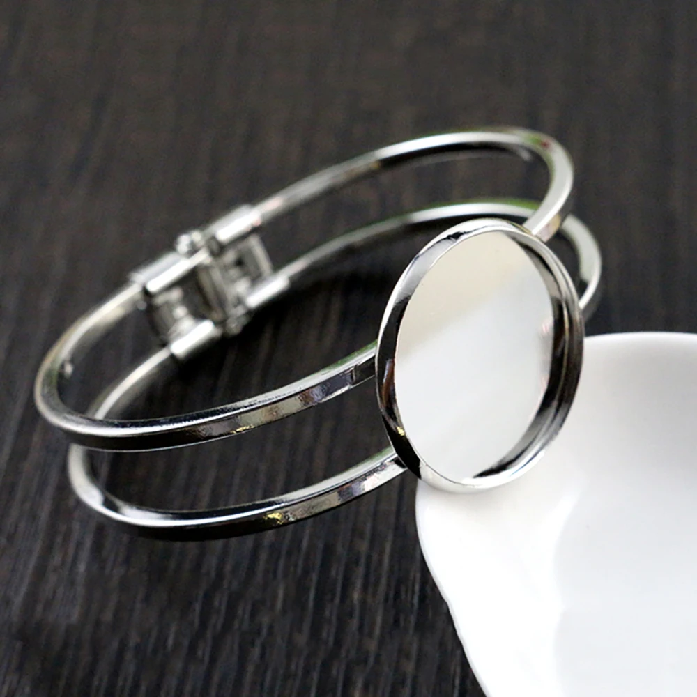 Высокое качество 25 мм Родиевые цвета покрытый Браслет База Браслет пустые результаты лоток рамка Установка Кабошон Камея (L1-22)