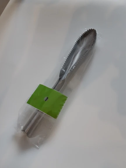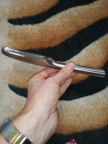 нормальный такой инструмент из нержавейки... зубчики немного островаты для таких рыб как например сибас или дорадо (повредит кожу и мясо), но подойдет для чистки карпа, леща и думаю лосося (хотя надо будет по лососю проверить) позже также проверю как чистит судака, не повреждает ли мясо и допишу отзыв.