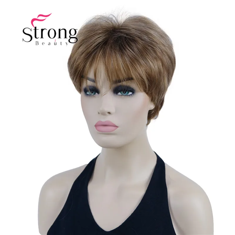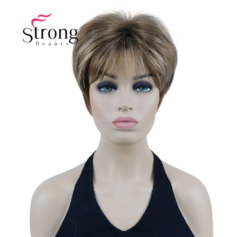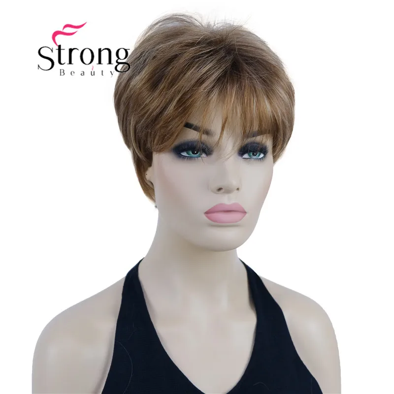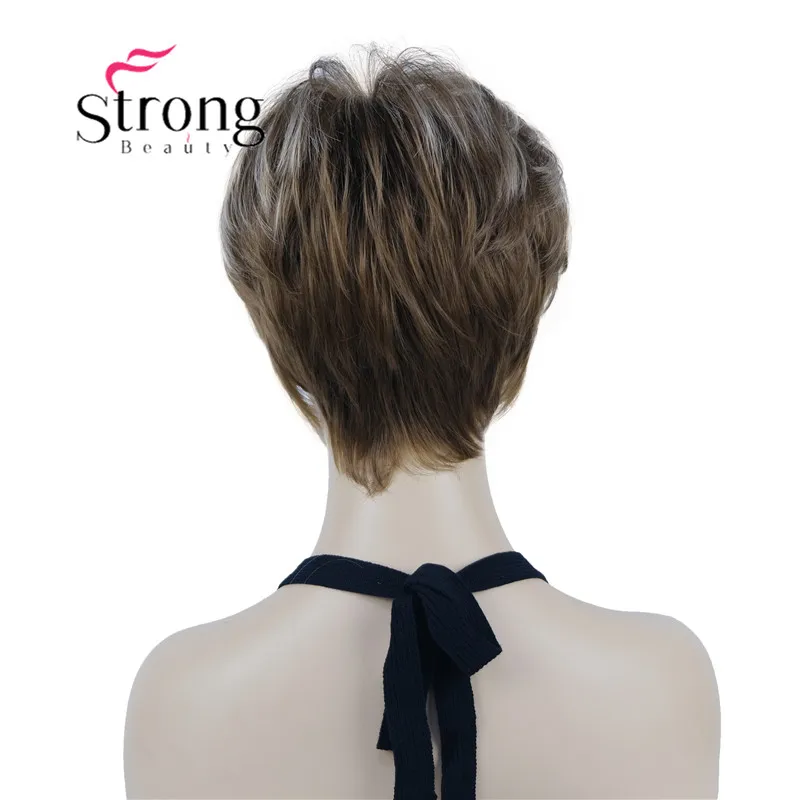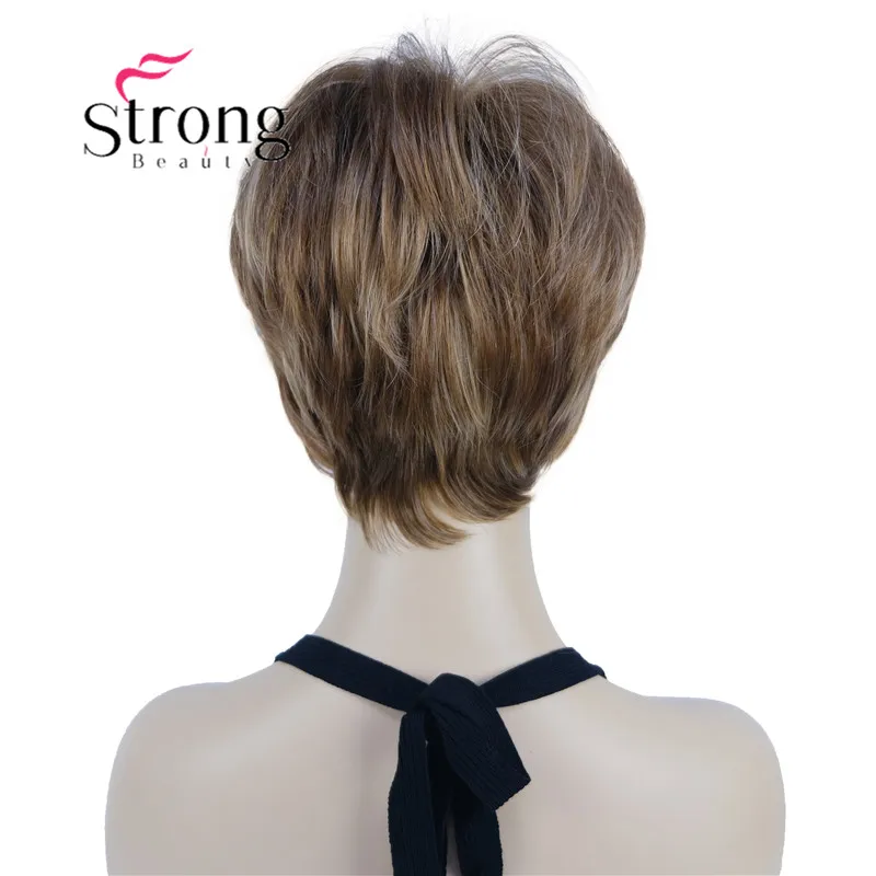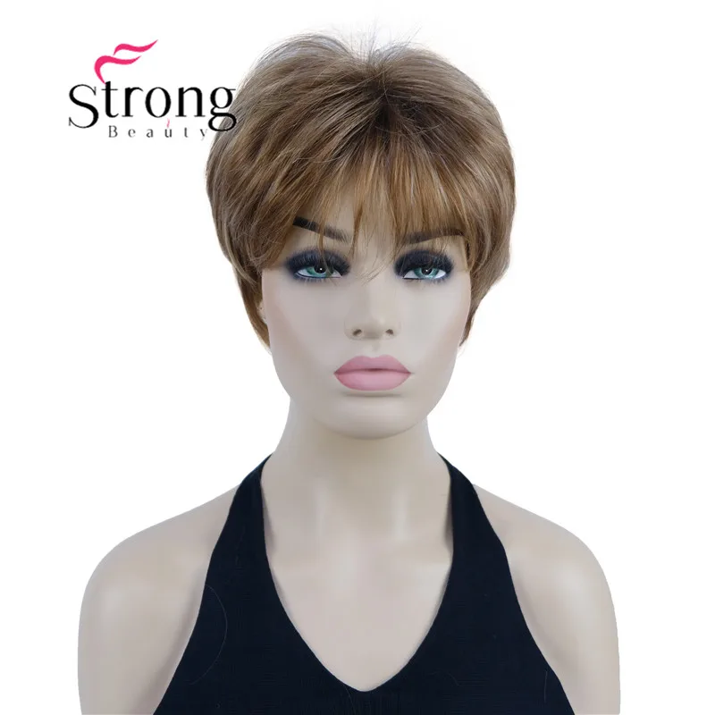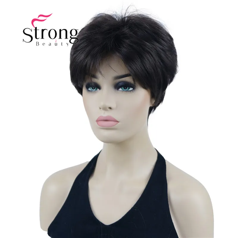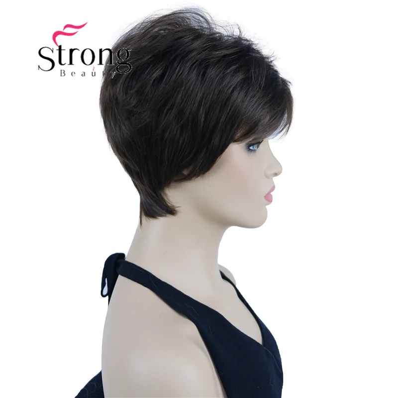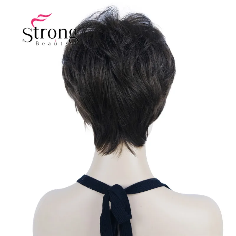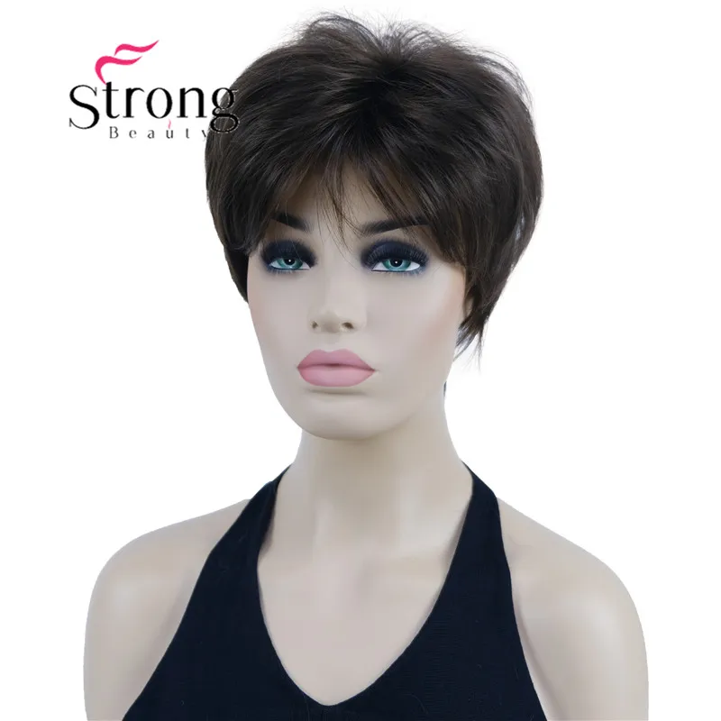 Классический синтетический парик StrongBeauty с короткими слоями коричневого цвета