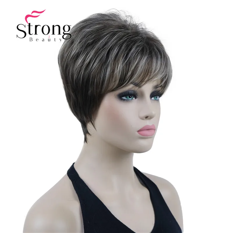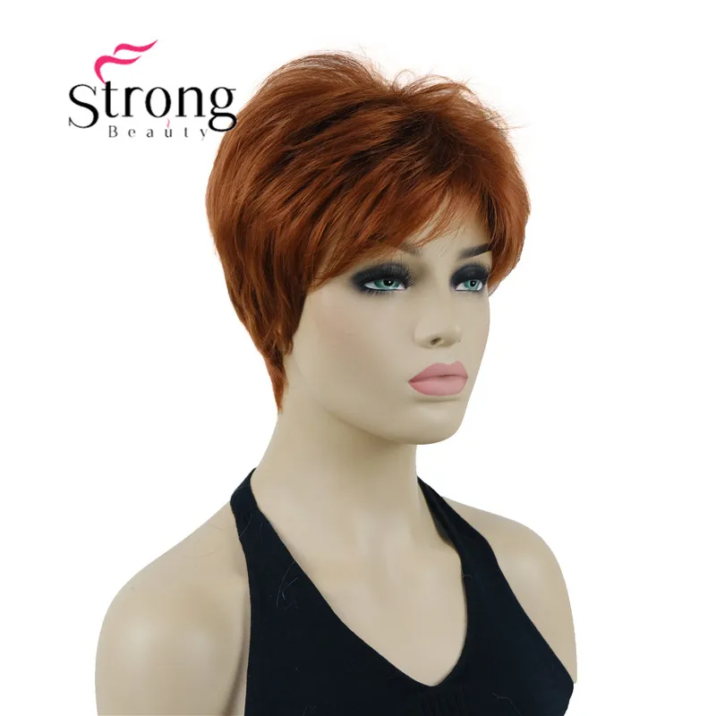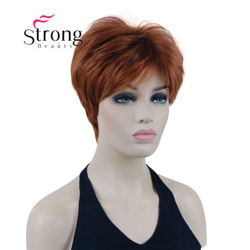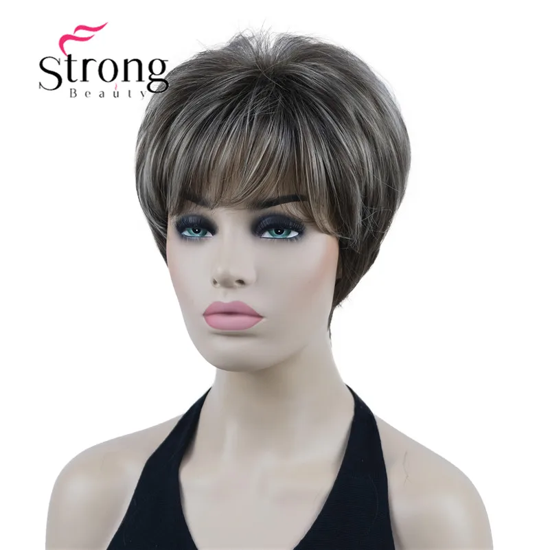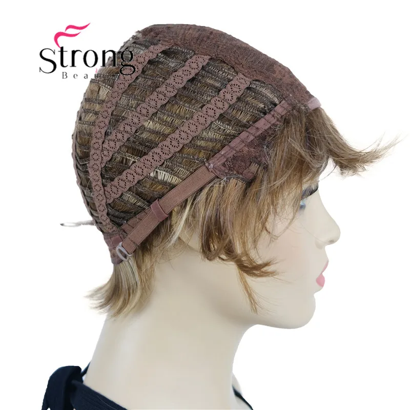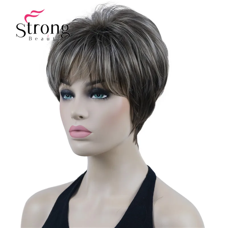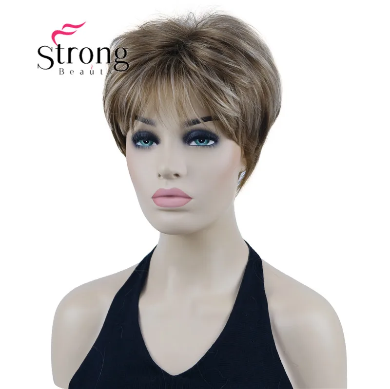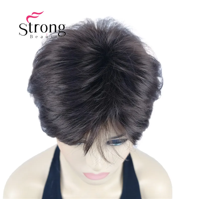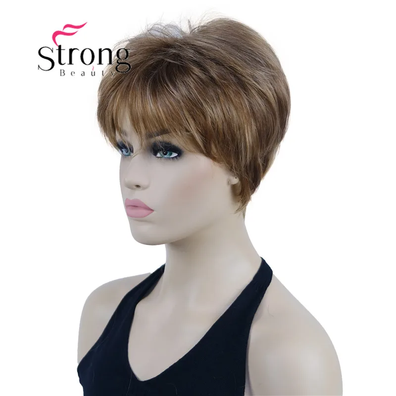 Классический синтетический парик StrongBeauty с короткими слоями коричневого цвета