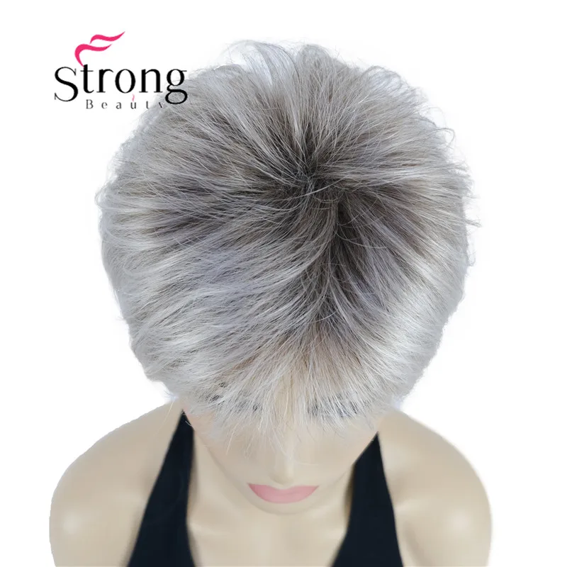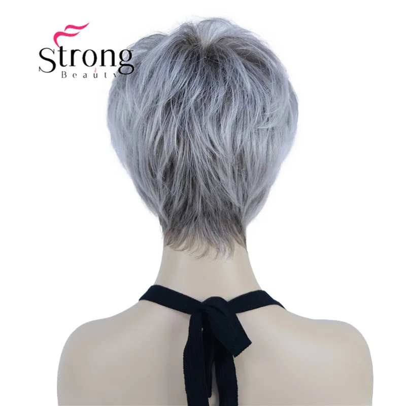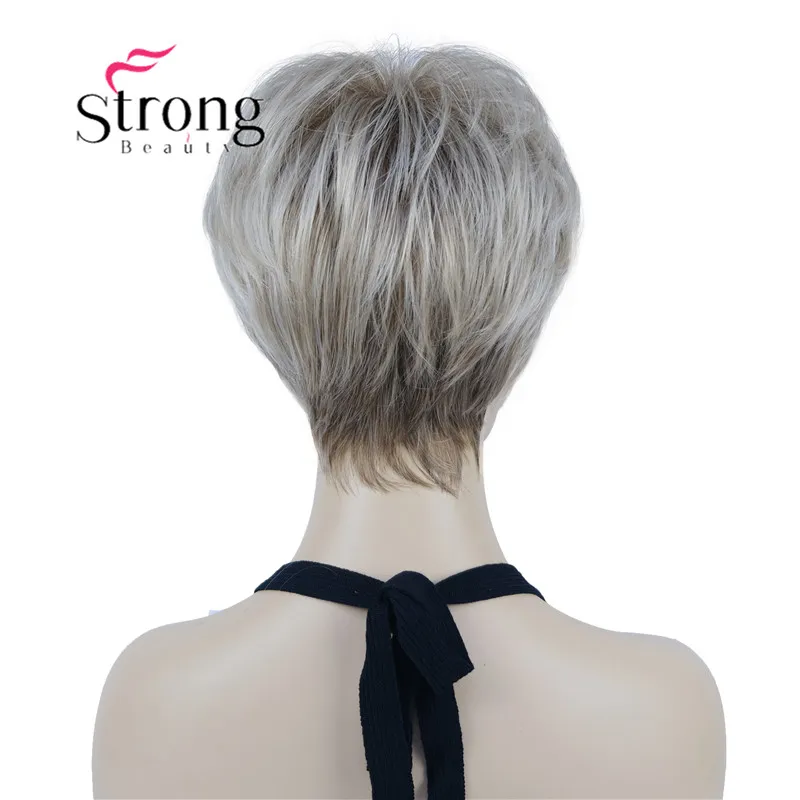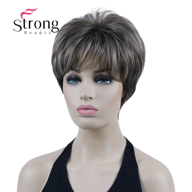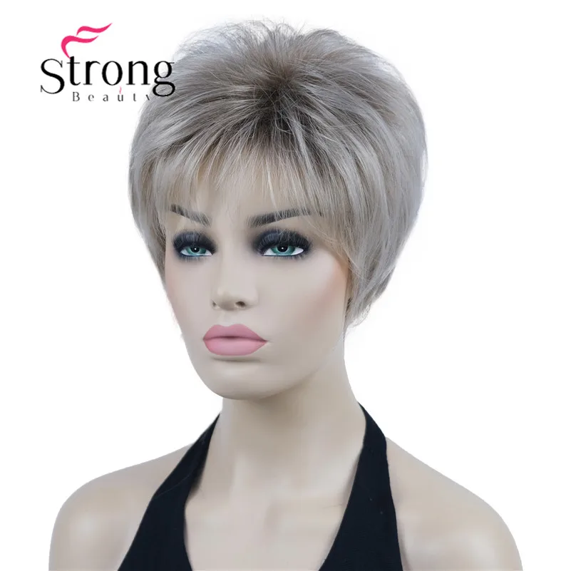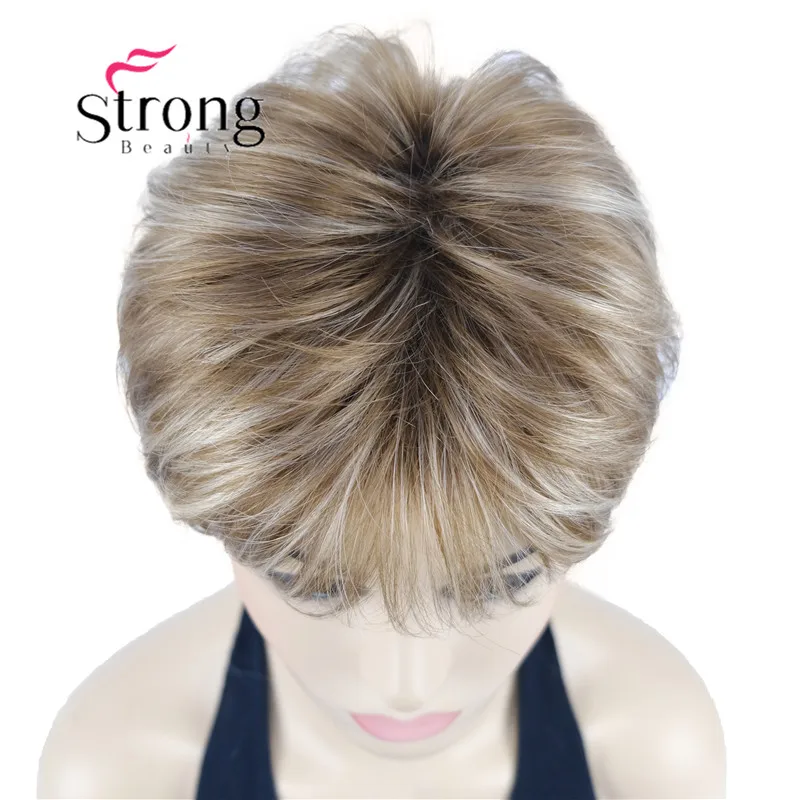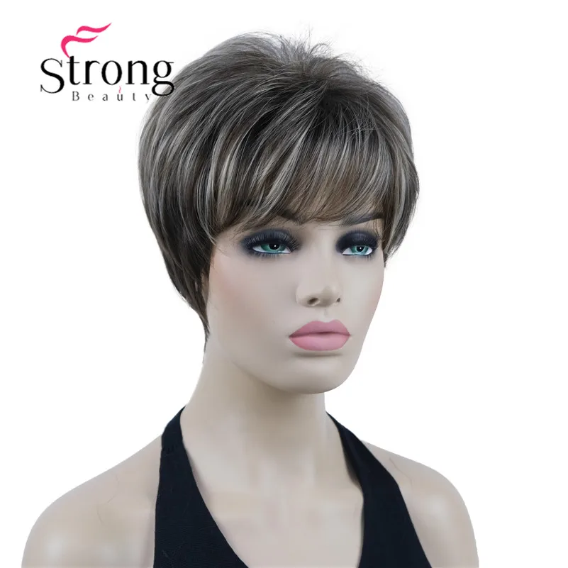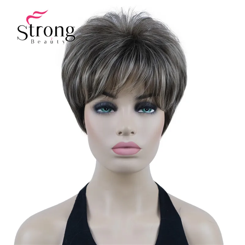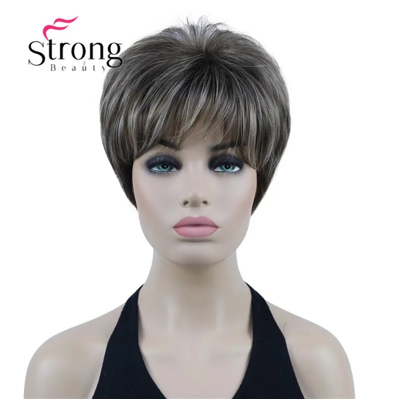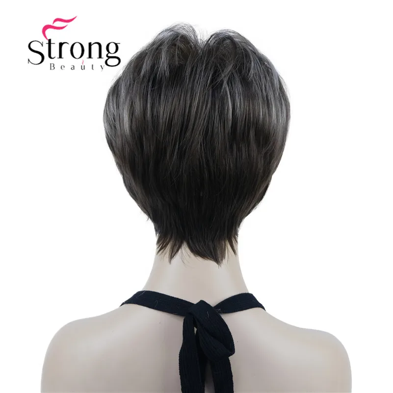 Классический синтетический парик StrongBeauty с короткими слоями коричневого цвета
