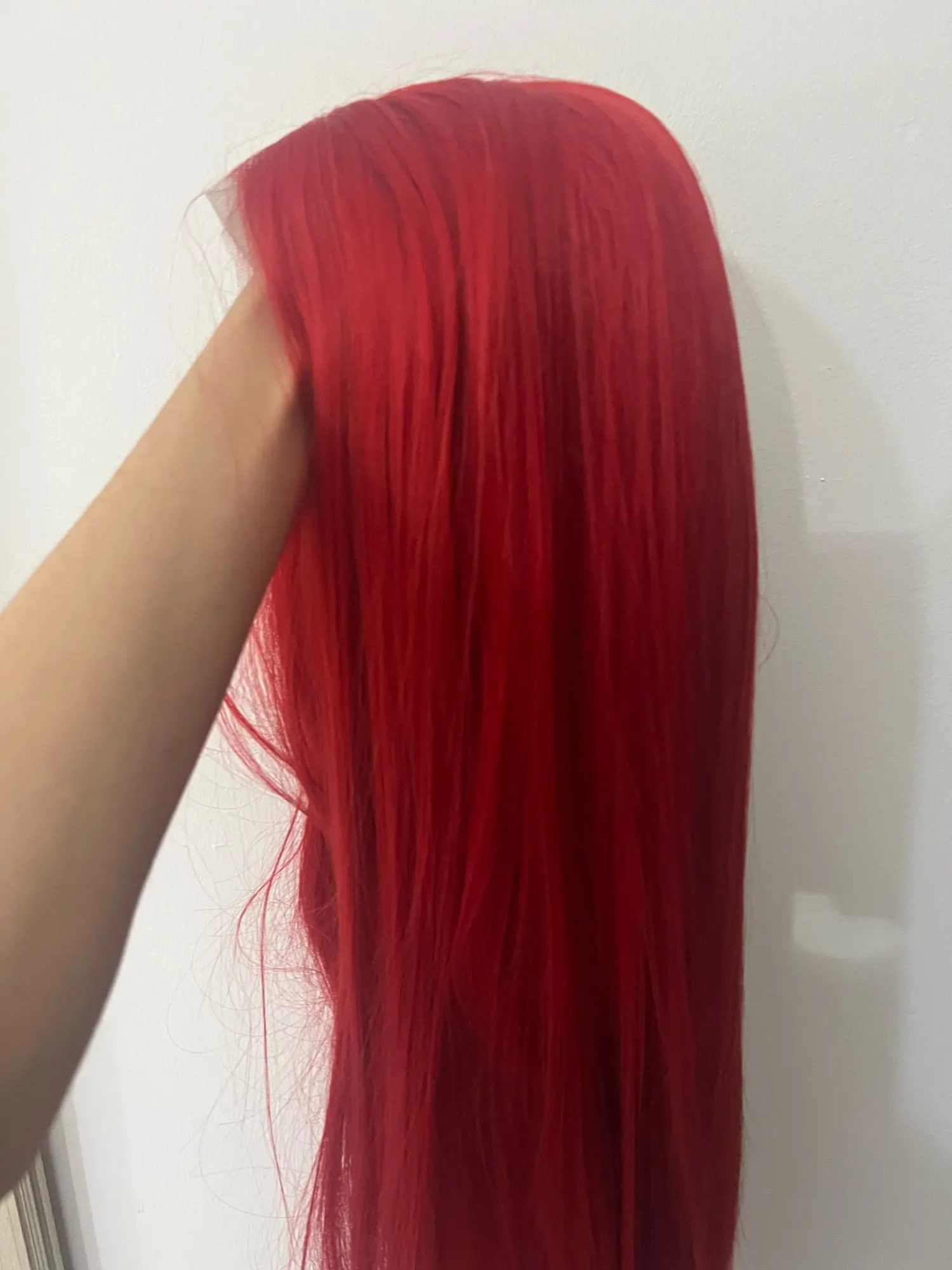 Теплостойкие волосы, Длинные шелковистые, прямые, красные, парики спереди, синтетические волосы, парик для женщин, средняя часть
