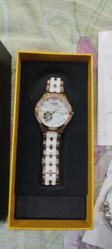 Очень хорошие часы с керамическим браслетом. Верный описанию. Очень красиво представлен в коробке. Очень хорошо упакован. Одним словом для гарантии. Я думаю, что часы хорошего качества. Я рекомендую продавца для этой покупки.