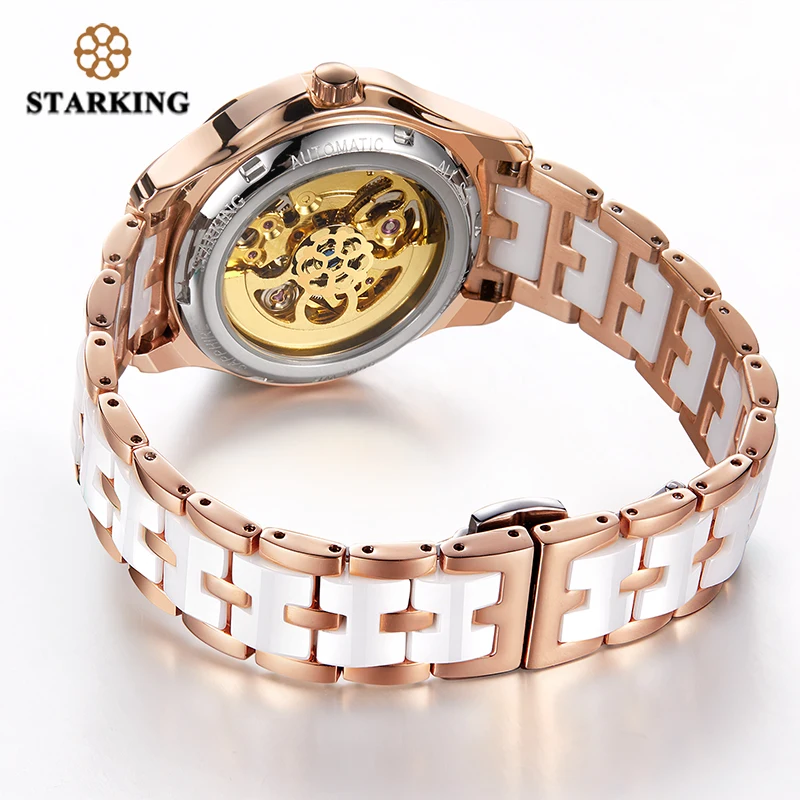 Часы-скелетоны женские механические, с автоподзаводом, диаметром 34 мм, стальной корпус под розовое золото