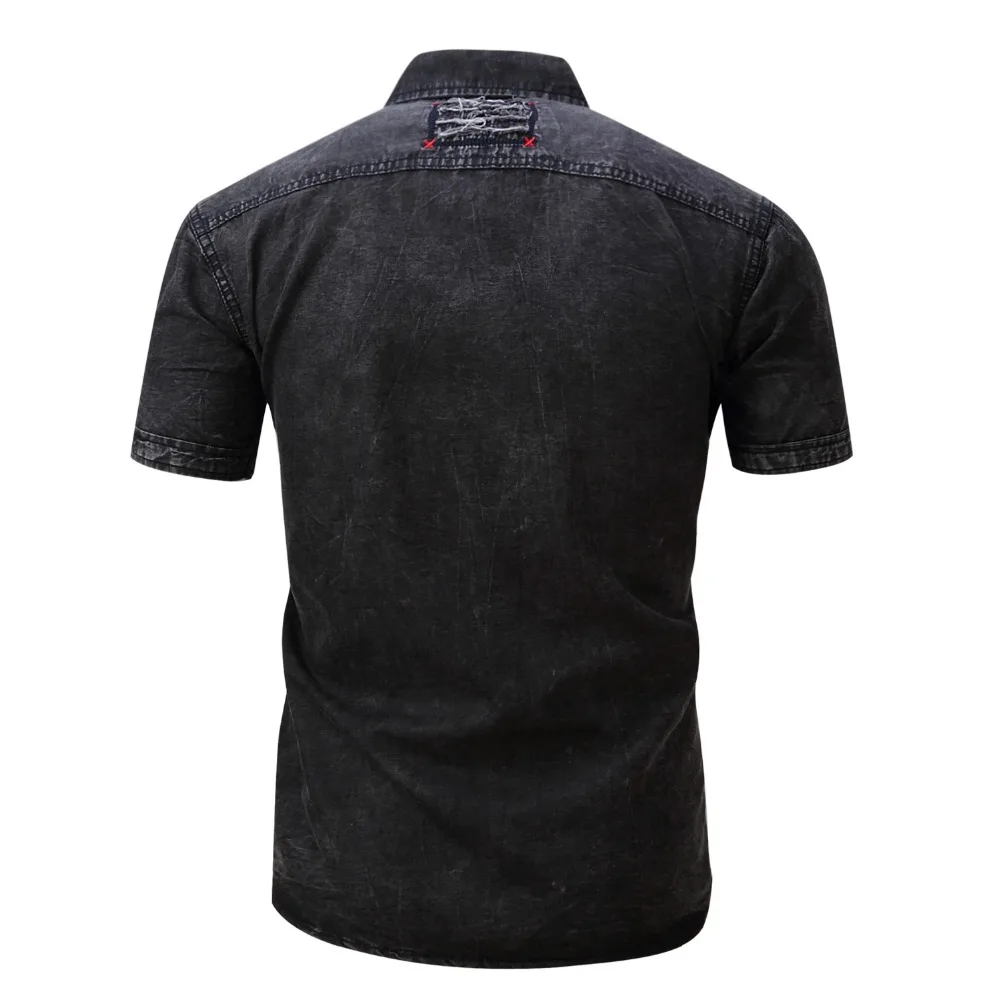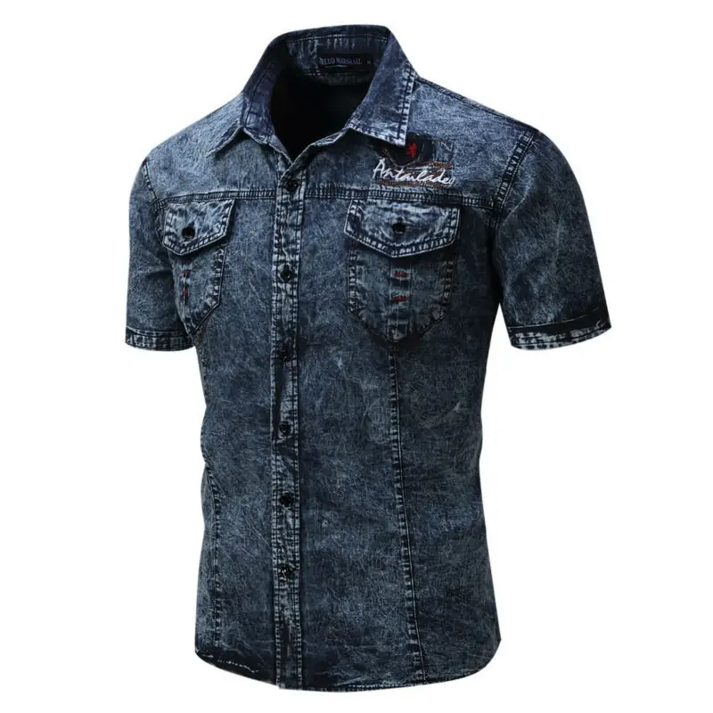Новая модная брендовая мужская рубашка большого размера, джинсовая рубашка с короткими рукавами, мужское Повседневное платье с длинным рукавом, мужские джинсовые однотонные рубашки, мужские