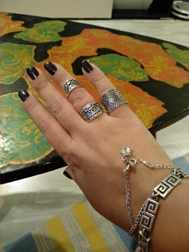 колечки красивые. пришли в индивидуальной упаковке - коробочке. смотрятся отлично, но мне подошли только на мизинец. раскрывать больше тяжело, метал твердый. в любом случае буду носить на мизинце, потому что очень красиво. спасибо.