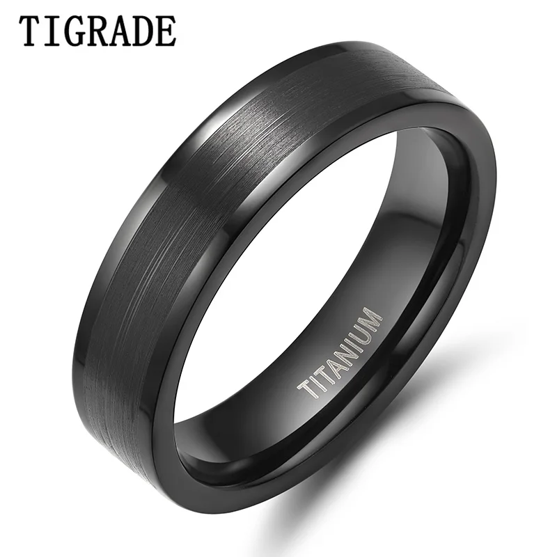Мужское кольцо Tigrade 6 мм из черного титана, обручальное кольцо унисекс в стиле, повседневные шикарные модные удобные кольца с начесом