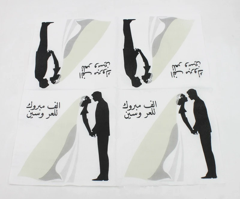 20 шт., арабские салфетки Невеста и жених, бумажные салфетки для свадебной вечеринки, кофейни, стеклянные украшения LUHONGPARTY
