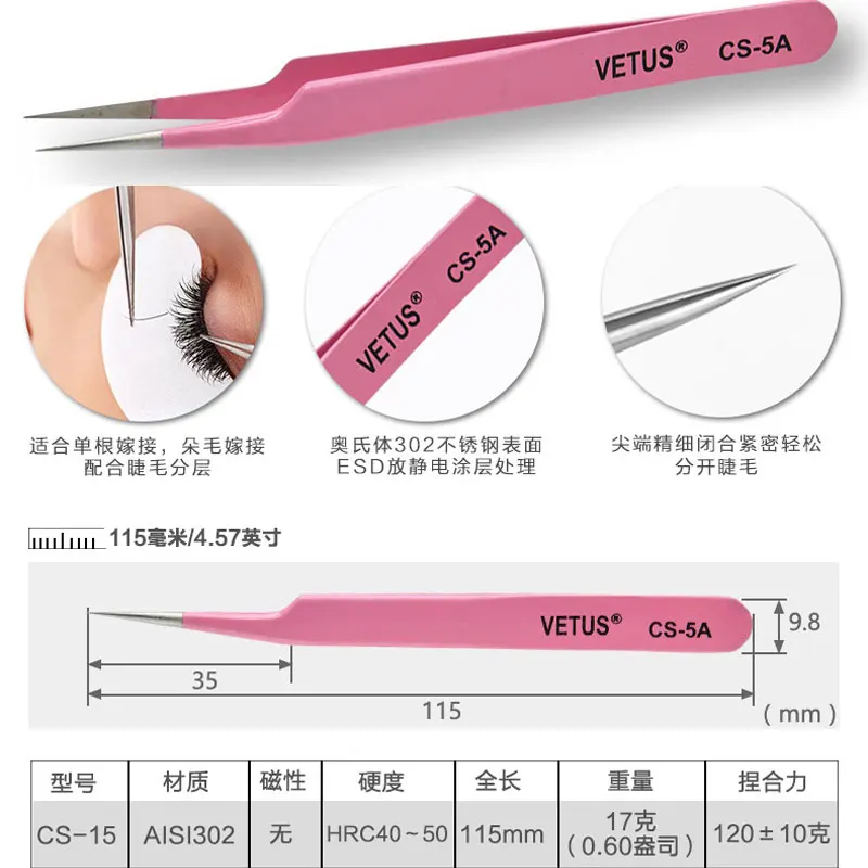 Vetus серии CS розовые щипцы для макияжа высокоточные щипцы из нержавеющей стали для наращивания ресниц