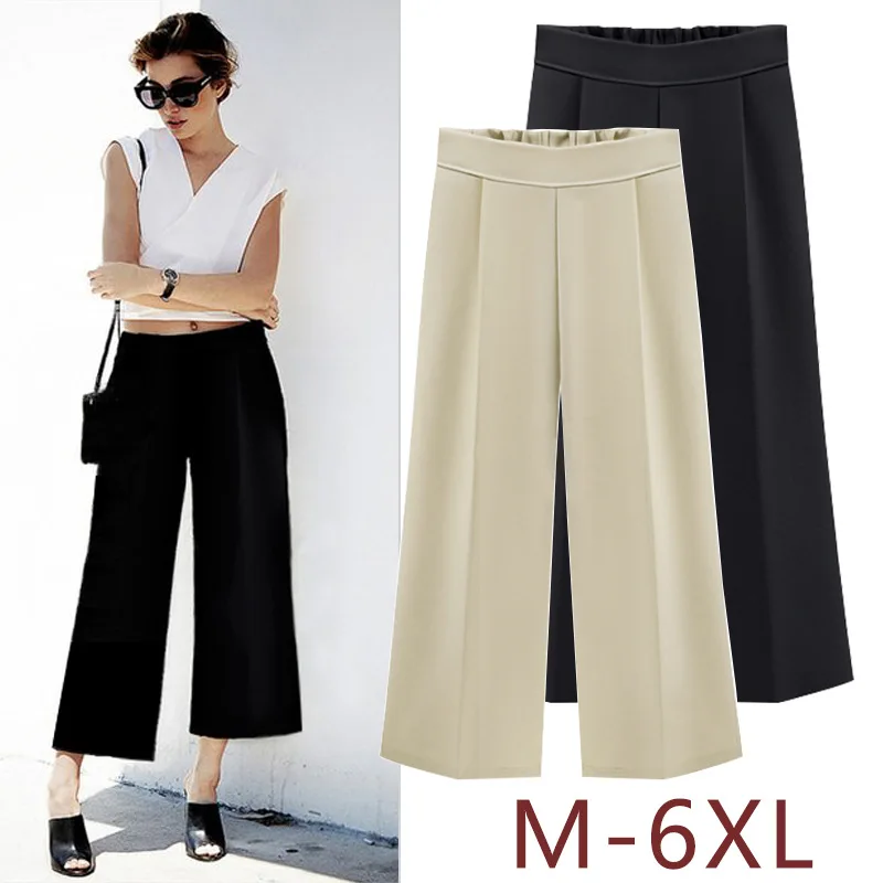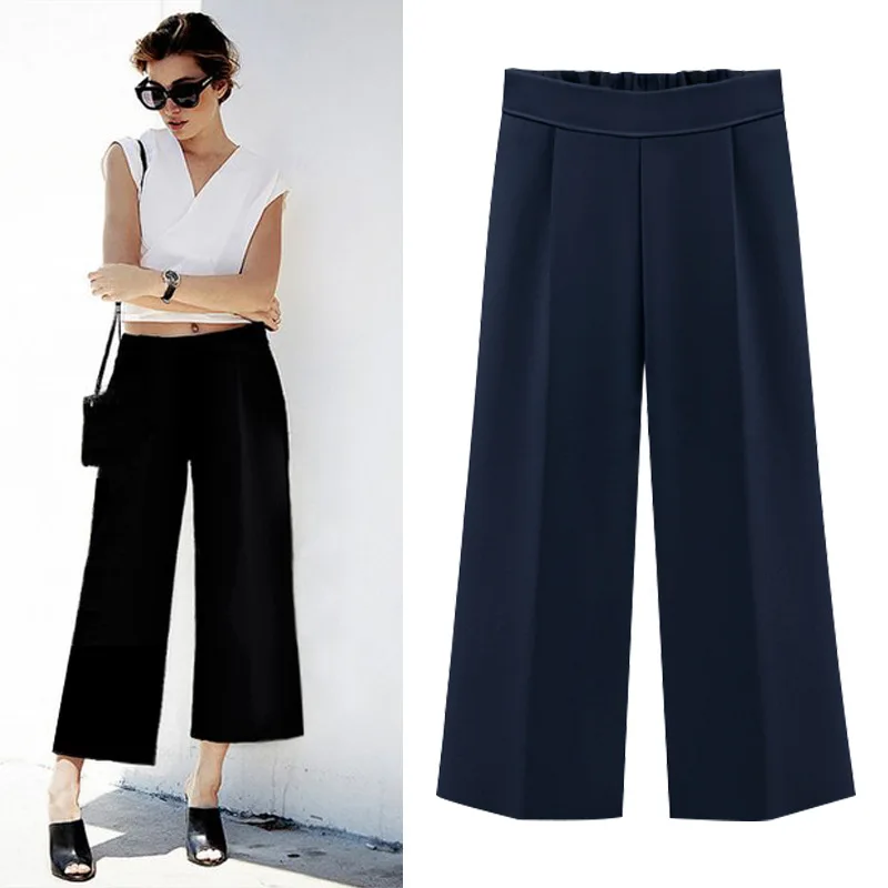 Брюки женские летние с широкими штанинами, свободные прямые повседневные штаны с завышенной талией