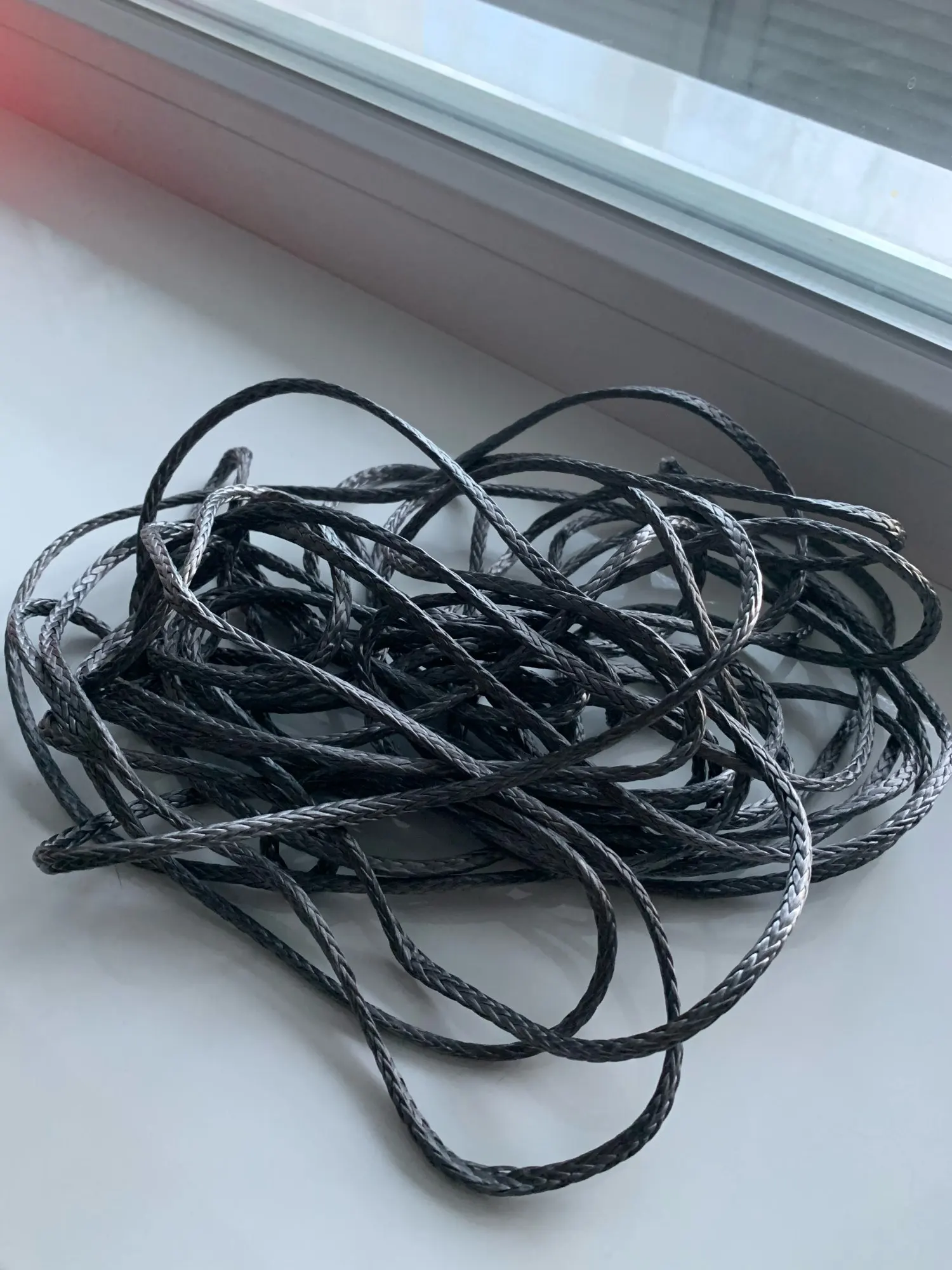 Получил за 2 недели. Веревка серого цвета, достаточно крепкая для 3мм. Зажигалкой не оплавляется, ножницами режется плохо. Очень легкая, похоже. что плавает в воде. Продавца рекомендую, что заказал, то и получил. Здесь всё честно.