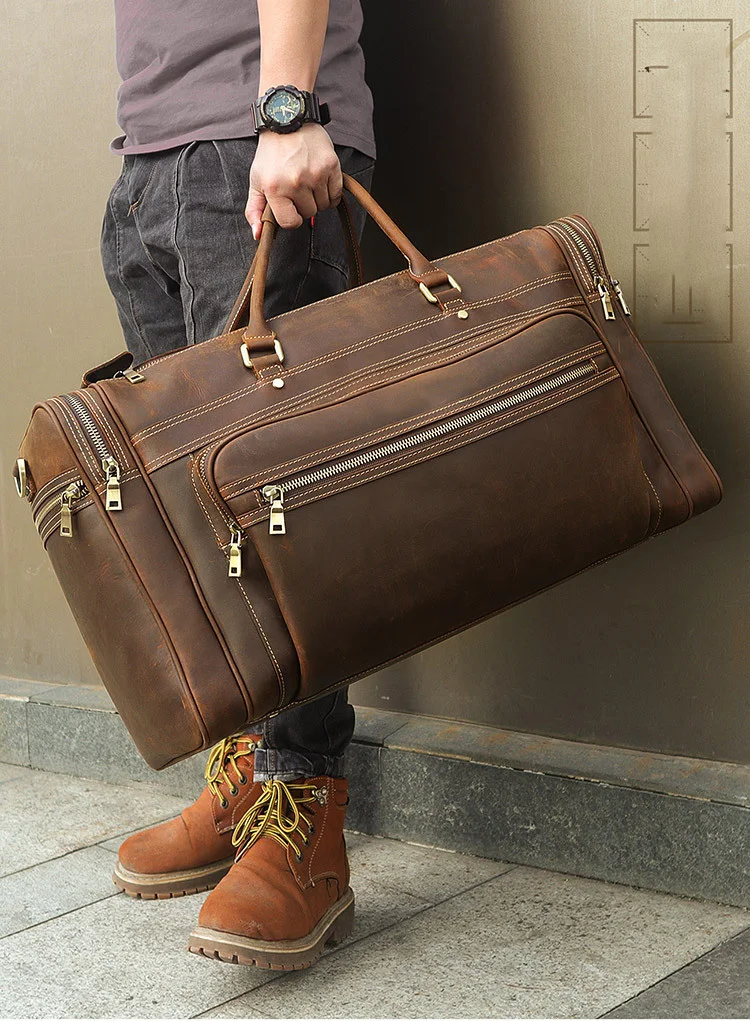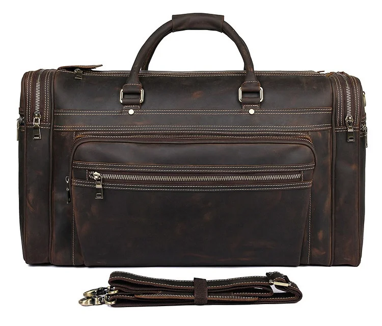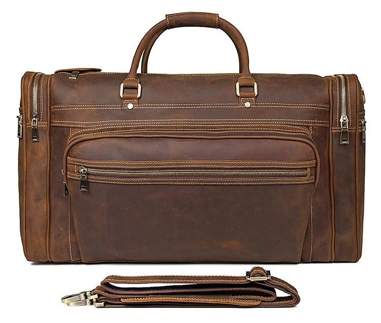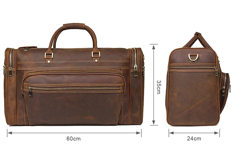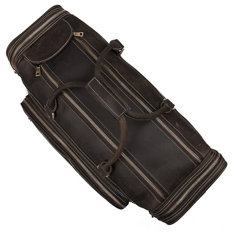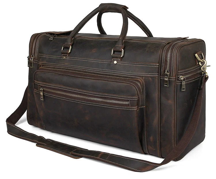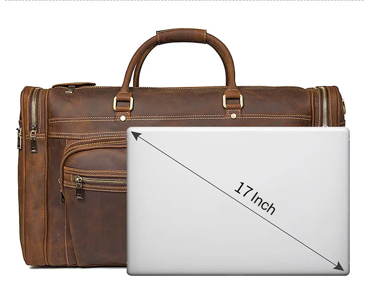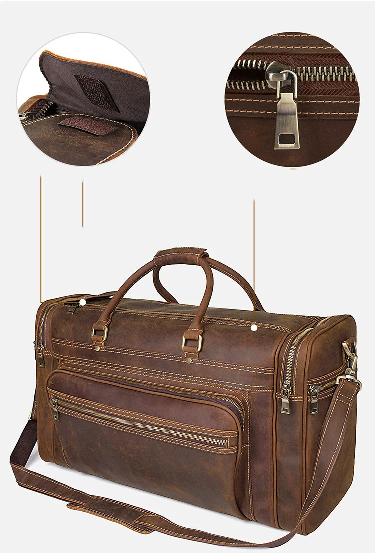 Мужская кожаная сумка Exlarge, винтажная Дорожная сумка из натуральной воловьей кожи на молнии, 22 дюйма, 2019