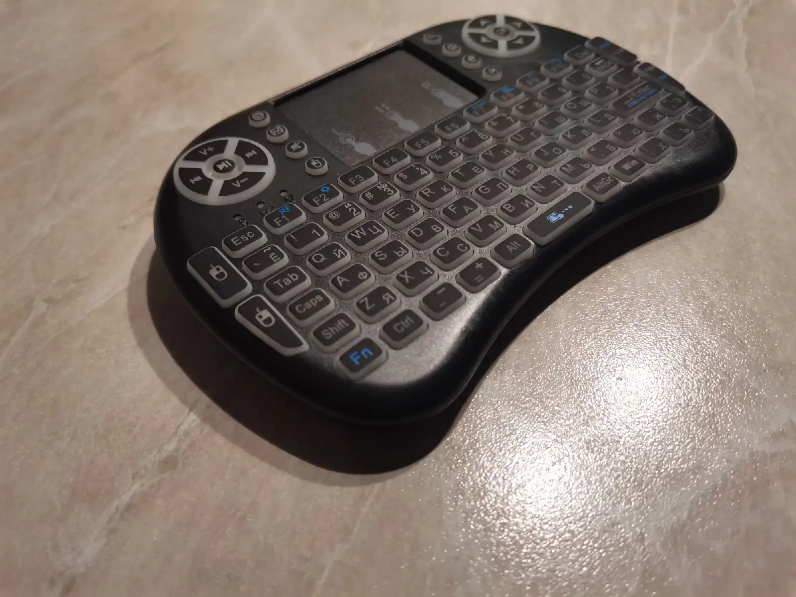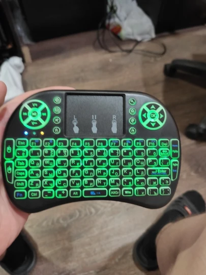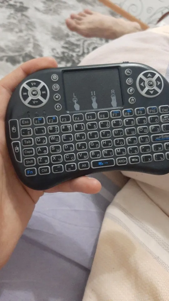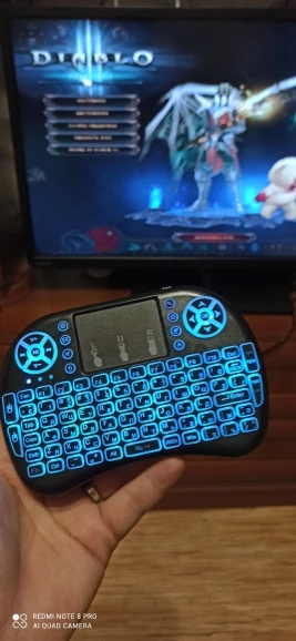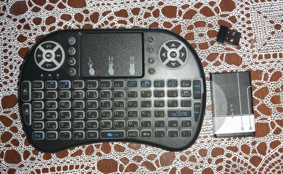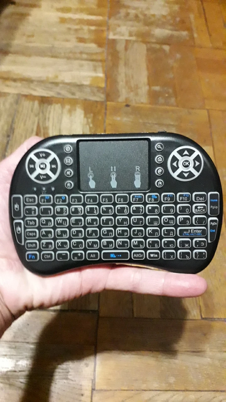 Супер мини-компактная клавиатура! Помещается на ладони. Очень легкая.практичная.удобная и заменяет пульт,мышку,джойстик! Просто супер! Один восторг и восхищение!