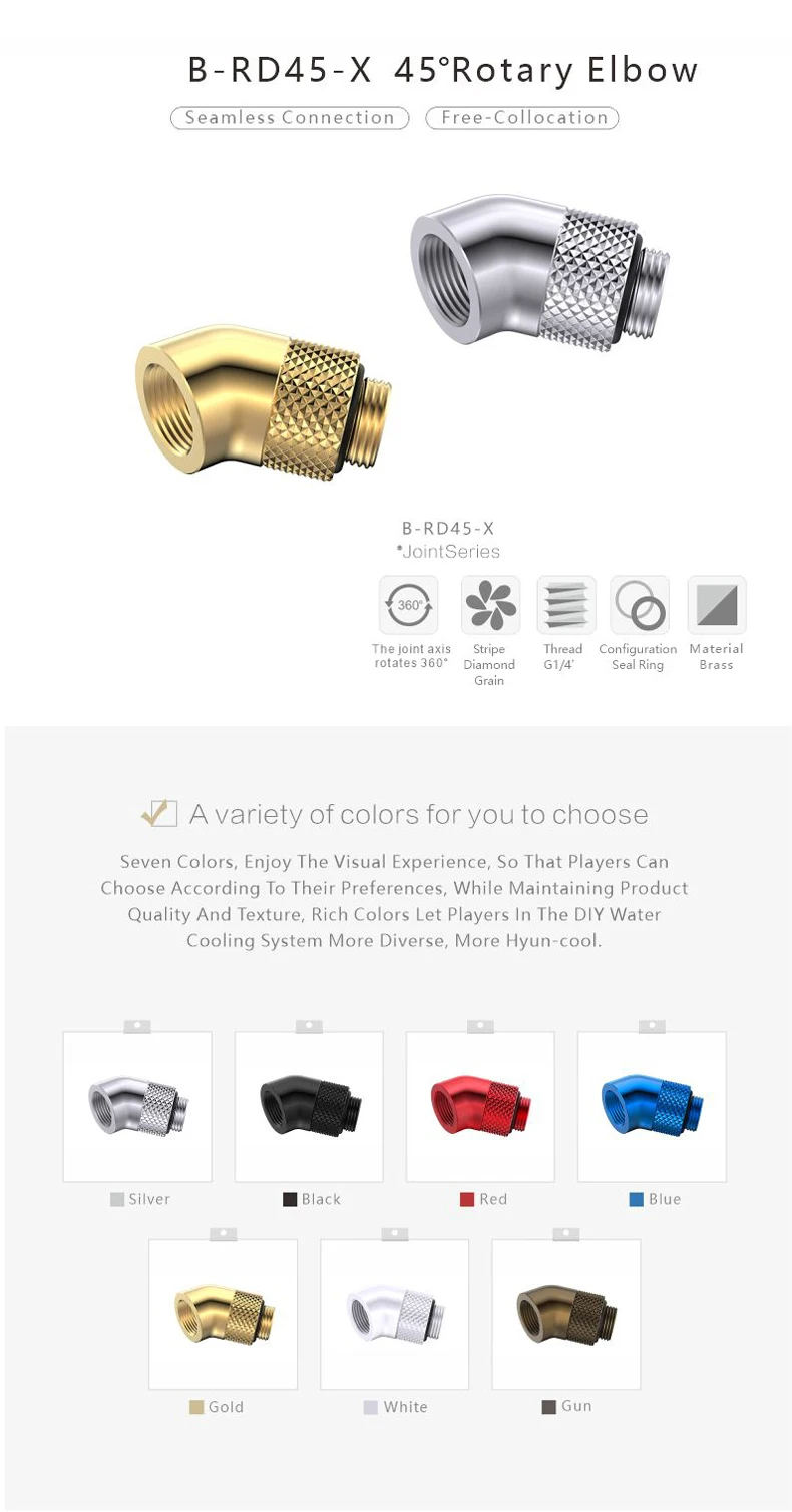 BYKSKI черный, золотистый, серебристый, красный, резьба G14 дюйма, поворотный фитинг на 45 градусов, адаптер из латуни, цвет водный