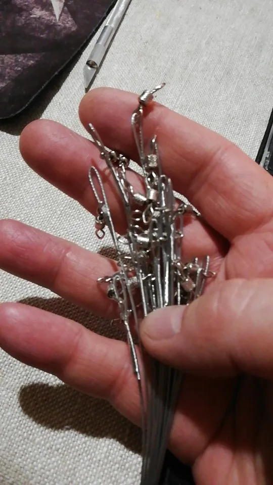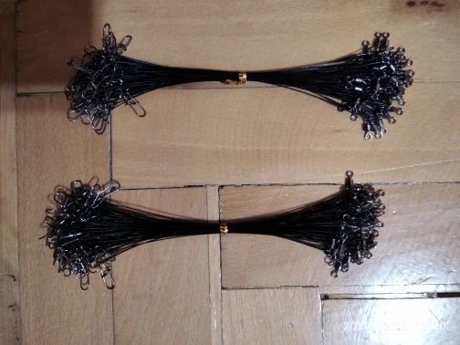 Диаметр поводков очень толстый. Карабины тоже очень большие и вертлюги.